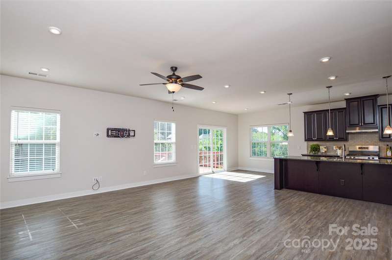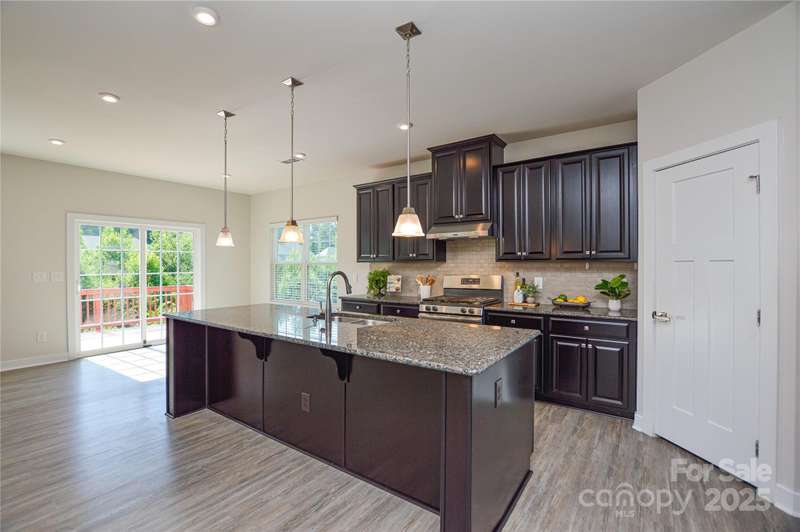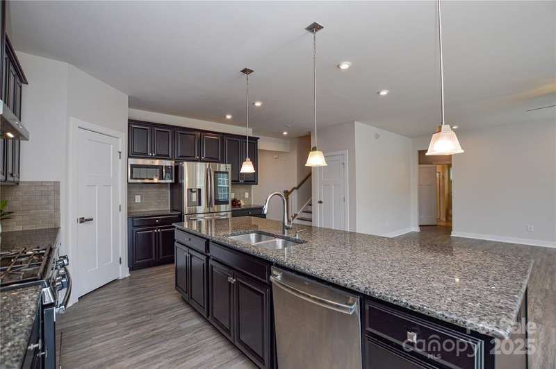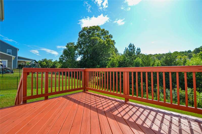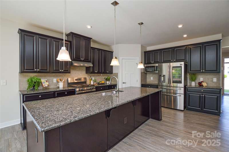 Enjoy the last days of Summer lounging beside the community pool/club house or popping into Langtree Lake Norman shops and eateries! Here is your "ticket": this 5BR/4BA home with Craftsman-style millwork, a pleasingly light shade of LVP flooring, fresh neutral paint, and tree-lined view. The Kitchen features a large island with drop lighting and breakfast bar, 42" cabinets, granite countertops, subway tile backsplash, walk-in pantry, and SS appliances including a French-door Samsung refrigerator with digital technology! It is open to a sizeable GR and, outside, a freshly stained deck and fenced-in backyard with woods beyond the fence. Also on the Main Level is a Flex Space and Guest BR Suite. A handsome staircase leads to a Loft, 4 more BRs, and a dedicated Laundry with washer and dryer. In the Primary En Suite are TWO (2) walk-in closets, a walk-in shower with bench, and private water closet. All BRs have plush new carpeting. Plus: window blinds throughout. Move-in ready!