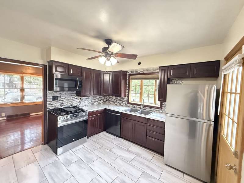 Welcome to this well-maintained and spacious two-story home offering comfort, flexibility, and a prime location right across from Lan Oak Park! This move-in ready gem features a generous layout with an extra living room, a cozy fireplace, and a beautifully updated kitchen with a bay window. Upstairs, you'll find spacious bedrooms with plenty of natural light. The home offers 3 total bathrooms, a partially finished walk-out basement, and a large 2.5-car garage with an extended driveway. Enjoy summer evenings on the patio, which connects seamlessly to the driveway-perfect for entertaining. The yard offers plenty of space to relax or play. New furnace recently installed. Conveniently located near shopping, restaurants, and major highways for an easy commute. Being sold as is, with so much space and potential, this home is a must-see!