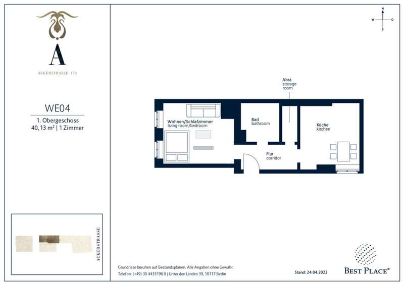 The listed building "Ackerstraße 153" is located in a popular residential street with many attractive old buildings, cafés, restaurants and bars. In the heart of Berlin-Mitte, between Invalidenstraße and Torstraße, within walking distance of Rosenthaler-Platz. The Wilhelminian style house was built in 1895 and has three courtyard buildings and two inner courtyards. The flats are accessed via a charming staircase; some are equipped with balconies or terraces. The units are completely rented, include a commercial unit on the ground floor and twenty residential units with 1 to 3 rooms and living spaces ranging from approx. 33 sqm to 84 sqm. If you want to invest in the heart of Berlin's Mitte, this is the place for you.