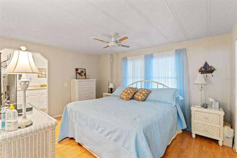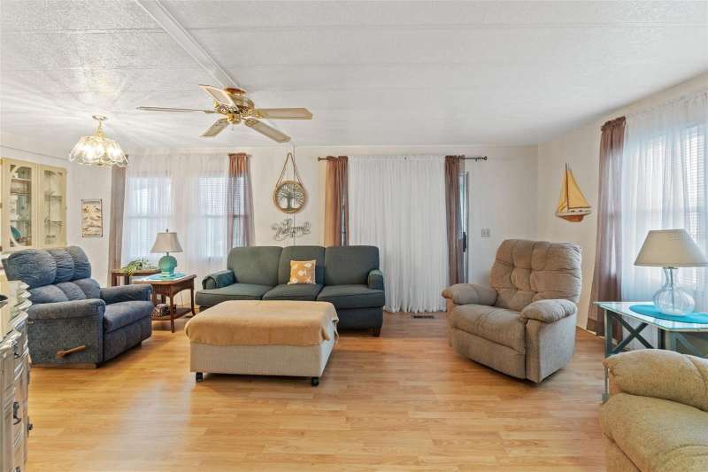 Clear 4 point available upon request! Welcome to Lake Conley Mobile Home Park, gated 55+ community with MULTIPLE amenities with very LOW community fees and NO lot rent, OWN the land! This beautifully maintained, double wide mobile home features laminate flooring, spacious living room area with a wonderful home layout! Ample kitchen with multiple cabinets! NEW windows makes this home bright! Tall ceilings! Spacious extended screened lanai! Golf carts welcomed. Community boat ramp, heated pool, clubhouse, a fishing pier and much more! Enjoy a fast commute to some of the most beautiful beaches in Florida, nature trails, restaurants, shopping and entertainment! One small pet allowed! Call for more information.