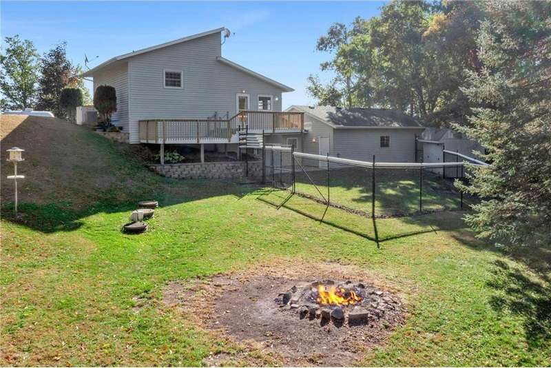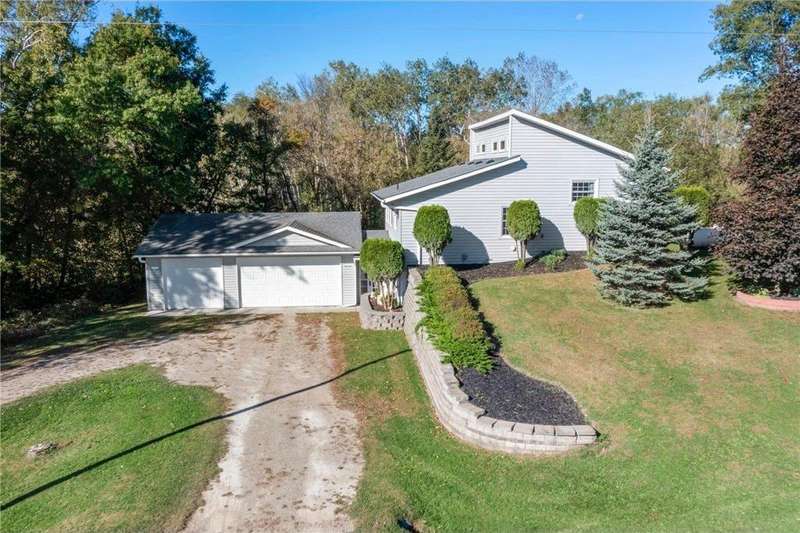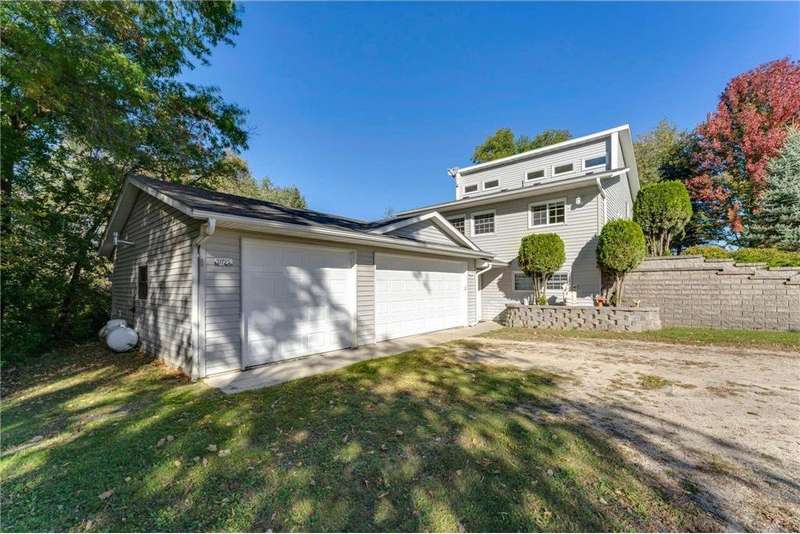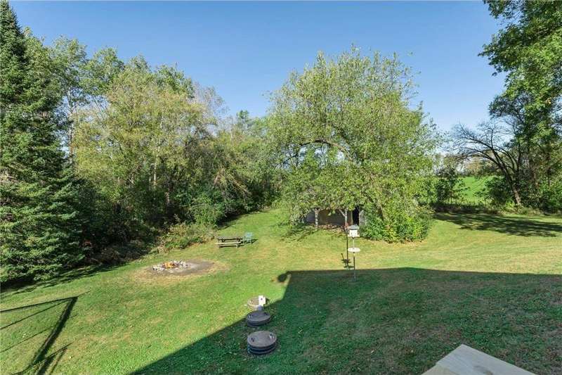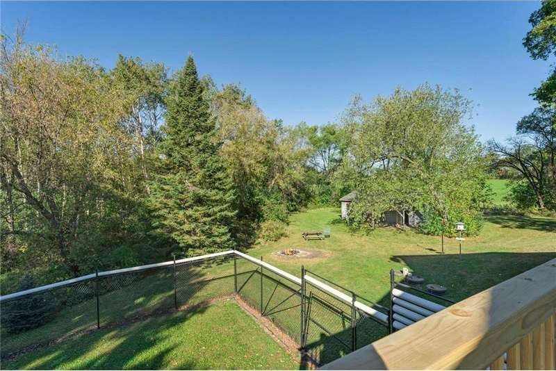 This charming and completely updated four-level home offers the perfect blend of modern living and rustic serenity. Welcome to your private retreat nestled on 2 beautiful rolling and wooded acres in desirable Northfield—just minutes from I-35 for an easy commute, yet a world away in peace and privacy. Step inside to a bright and open main floor featuring vaulted ceilings, large windows, and an eat-in kitchen with abundant counter space and cabinetry. The cozy living room flows seamlessly to a spacious deck, where you'll enjoy breathtaking views of the pond and frequent visits from local wildlife. Upstairs, you’ll find two comfortable bedrooms and a full bath. The lower level includes a warm and inviting family room with oversized windows that fill the space with natural light. The walkout leads to a tranquil backyard oasis—perfect for relaxing or entertaining. An attached, heated, and insulated garage adds both convenience and comfort. This property also includes a large pole barn for all your storage needs, a workshop-equipped shed with electricity, and a backup generator for peace of mind. Every detail reflects pride of ownership and thoughtful care. Whether you're looking for a quiet place to call home or a weekend getaway, this property delivers country living with modern convenience.