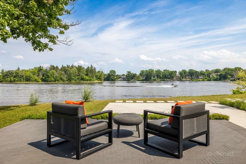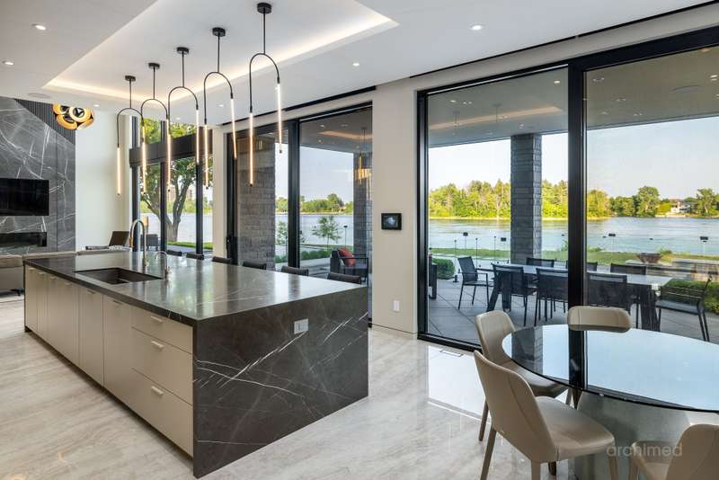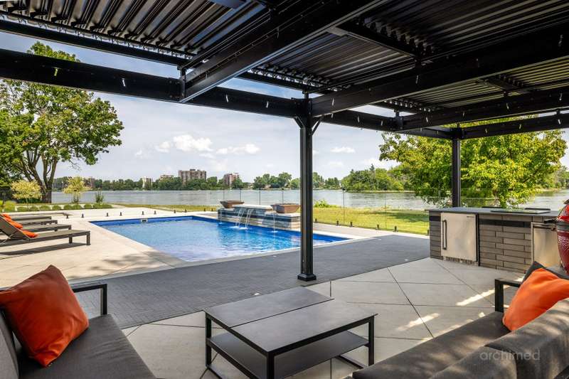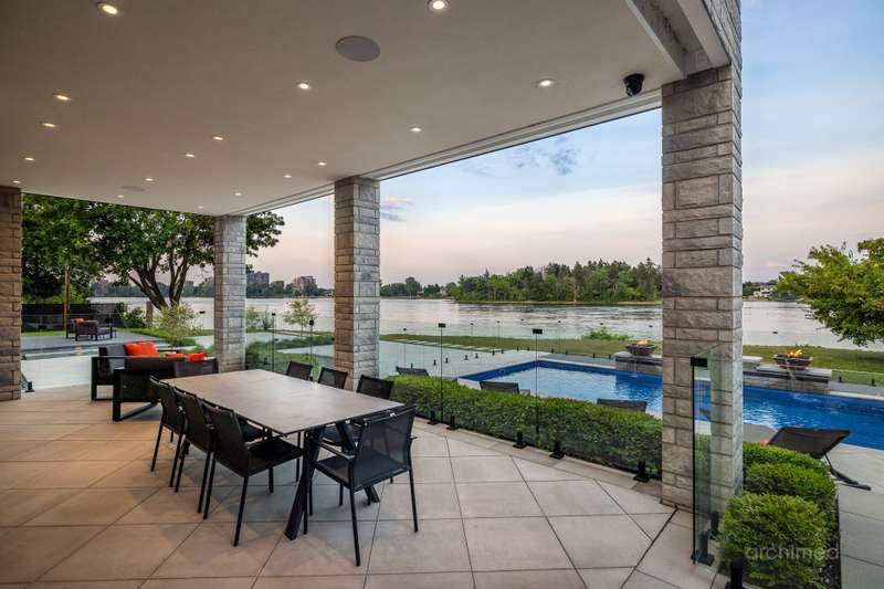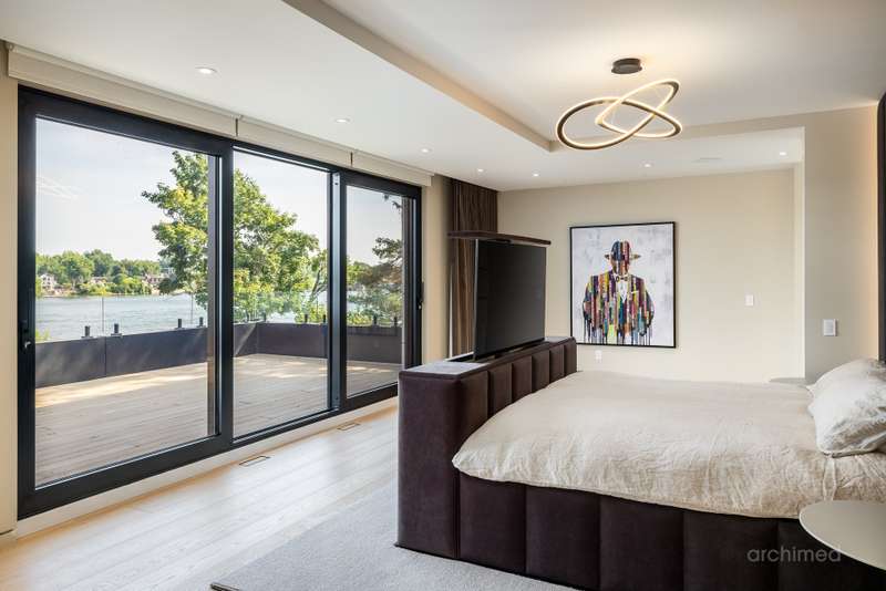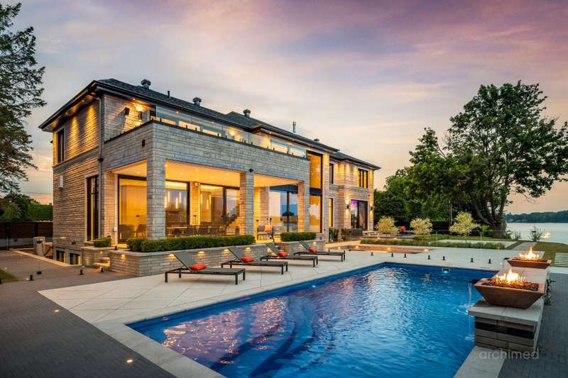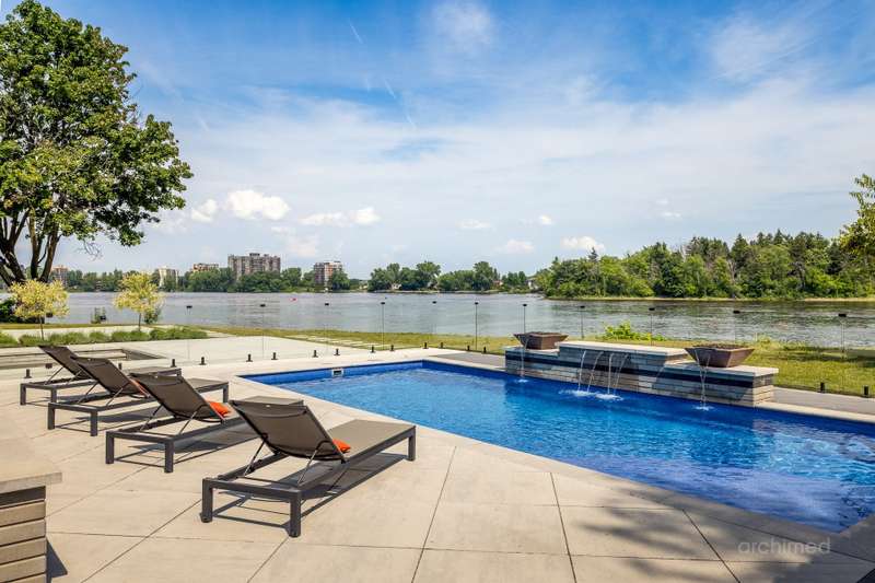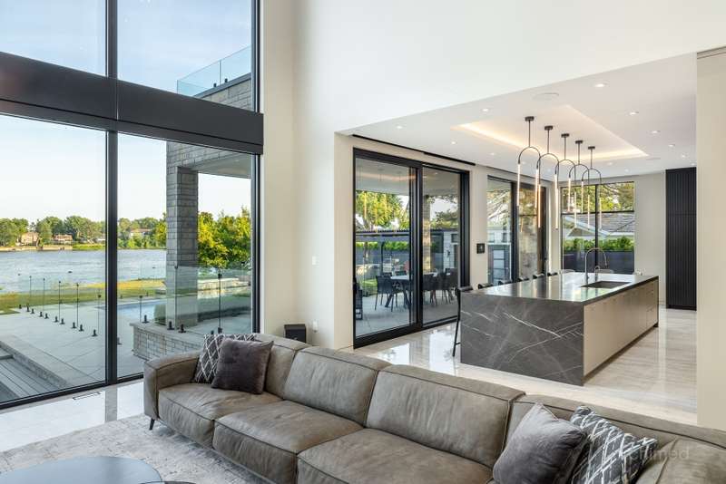 Designed by Antonio Pizzano, distinguished interior designer renowned for his bold luxury, his discerning eye for intricate detail and a meticulously curated approach to every project, this exceptional waterfront residence features over 150 foot seawall and a panoramic view of Riviere Des Prairies. This exquisite property sits on a private 26,000 sq. ft lot and features 6 bedrooms, 6 plus 2 bathrooms, a marble kitchen and primary bathroom, home theatre, full size gym with dry sauna, indoor/outdoor living space, in ground salt water pool, a sunken fire pit with ample seating, half basketball court and 3 car garage.