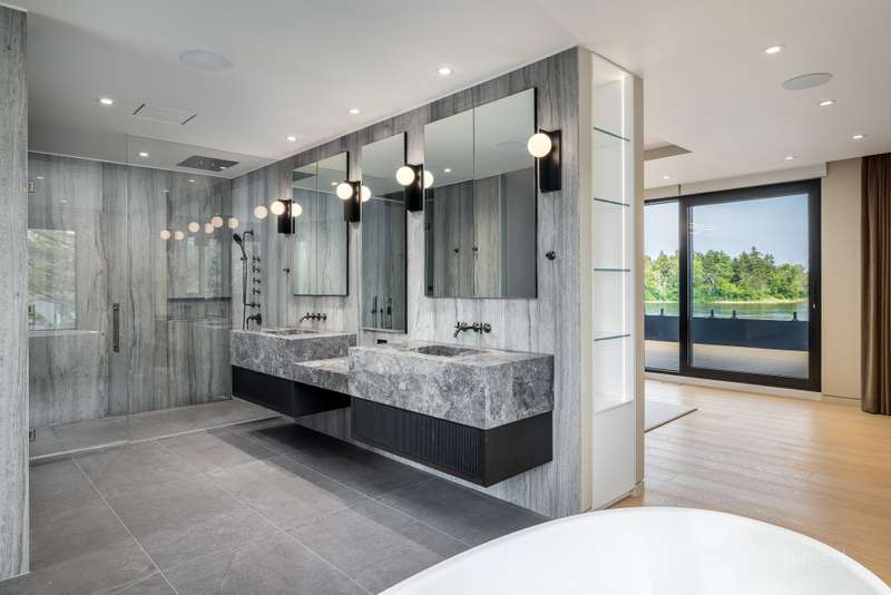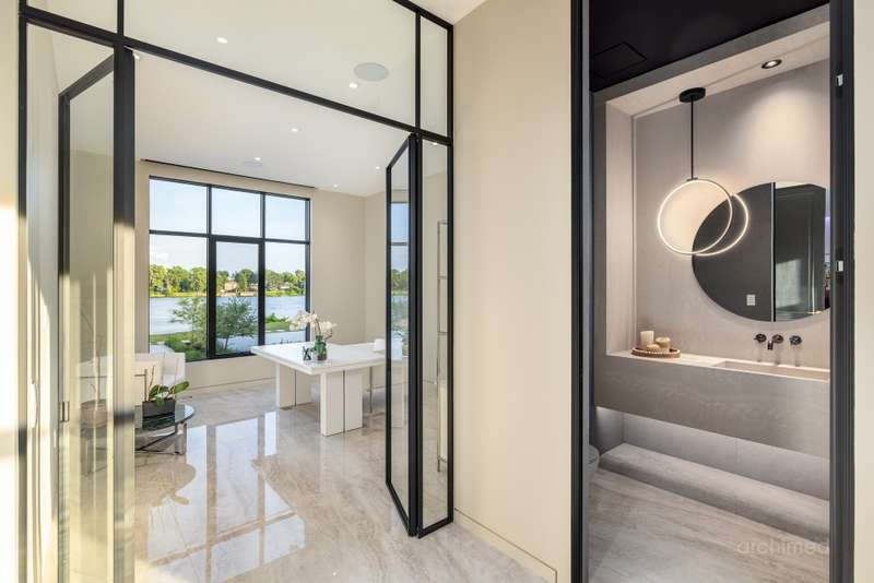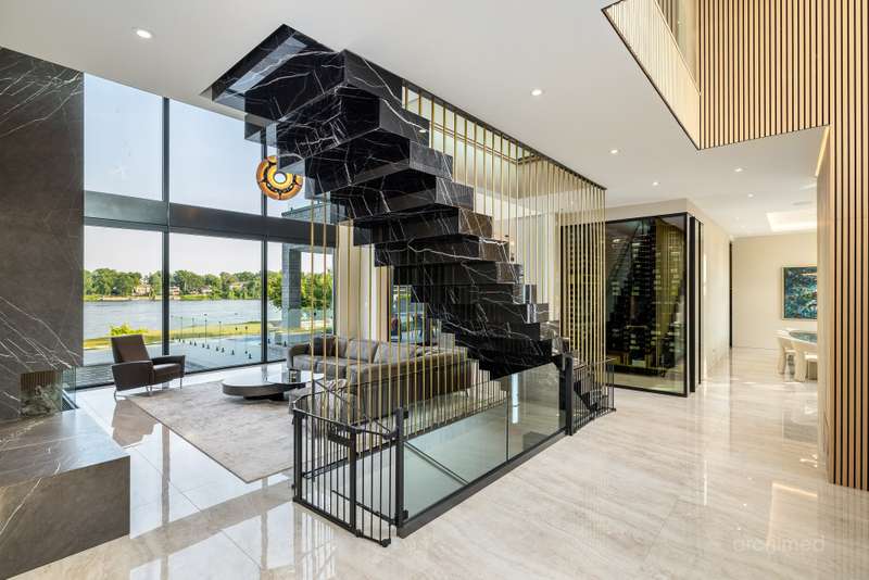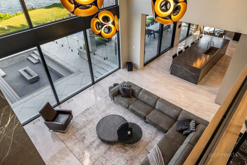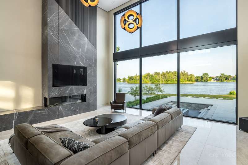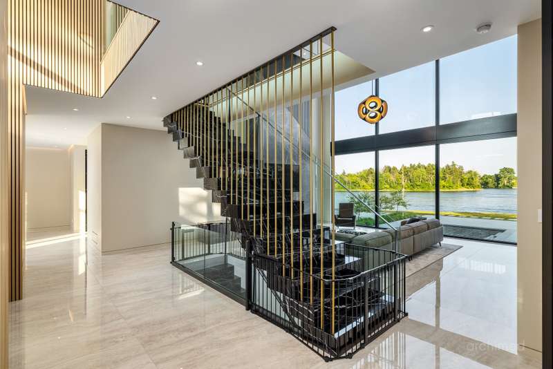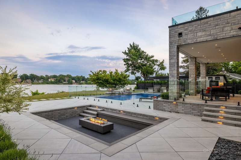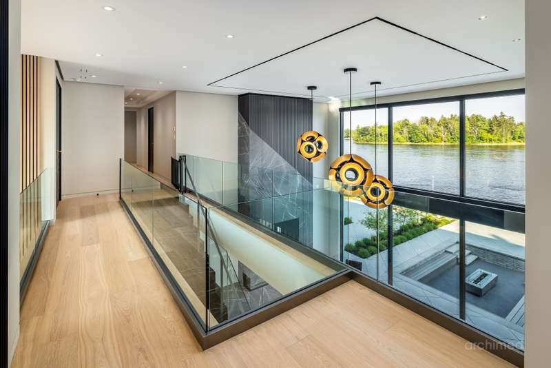 Designed by Antonio Pizzano, distinguished interior designer renowned for his bold luxury, his discerning eye for intricate detail and a meticulously curated approach to every project, this exceptional waterfront residence features over 150 foot seawall and a panoramic view of Riviere Des Prairies. This exquisite property sits on a private 26,000 sq. ft lot and features 6 bedrooms, 6 plus 2 bathrooms, a marble kitchen and primary bathroom, home theatre, full size gym with dry sauna, indoor/outdoor living space, in ground salt water pool, a sunken fire pit with ample seating, half basketball court and 3 car garage.