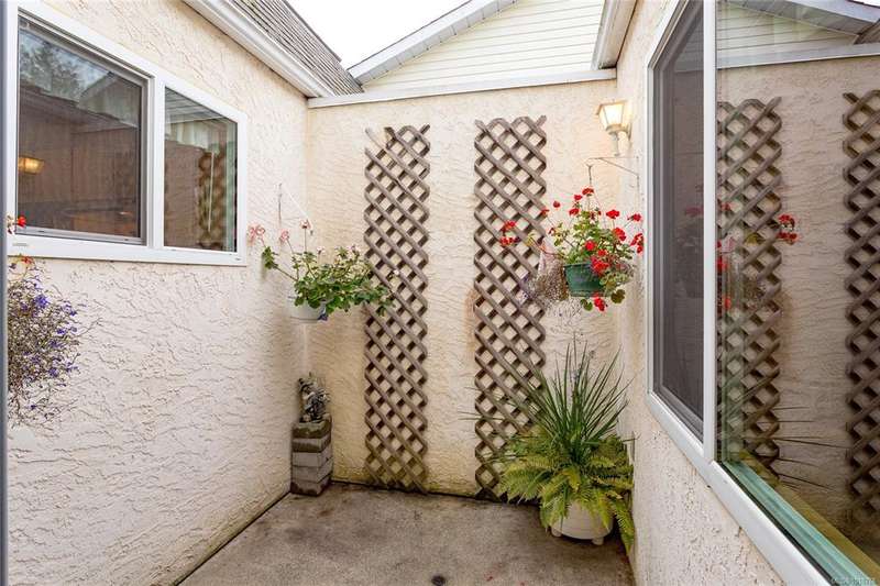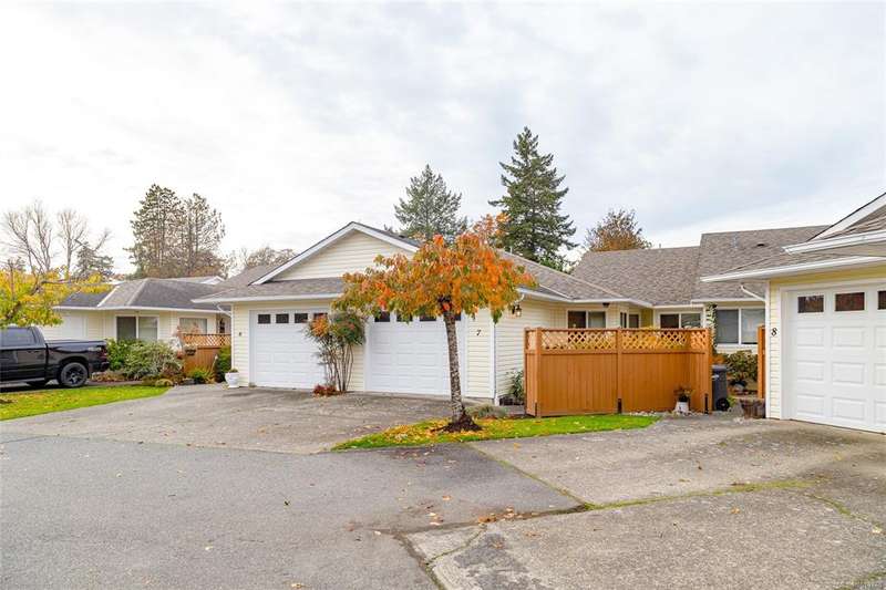 Welcome to Oak Glen Estates, a well-managed and friendly community in the heart of Saanich. This bright and spacious townhome offers 1,382 sq ft. of comfortable living with 2 large bedrooms and 2 full bathrooms. The home features open-concept living and dining areas, a primary suite with walk-in closet and ensuite bath. Enjoy private outdoor spaces with a sunny patio, easy-care yard, and a sunny atrium accessed by sliding glass doors. Quietly located next to Panama Hill Park and close to Colquitz Creek Trail and Park, shopping, recreation, and transit. Additional highlights include a garage with direct entry, newer garage door, and access to a clubhouse, guest suite, library, fitness room, and games area within this welcoming complex. Don't miss out on your opportunity to enjoy private, one-level living in a well-run family-friendly strata. And of course, your dog & cat fur babies also welcome!