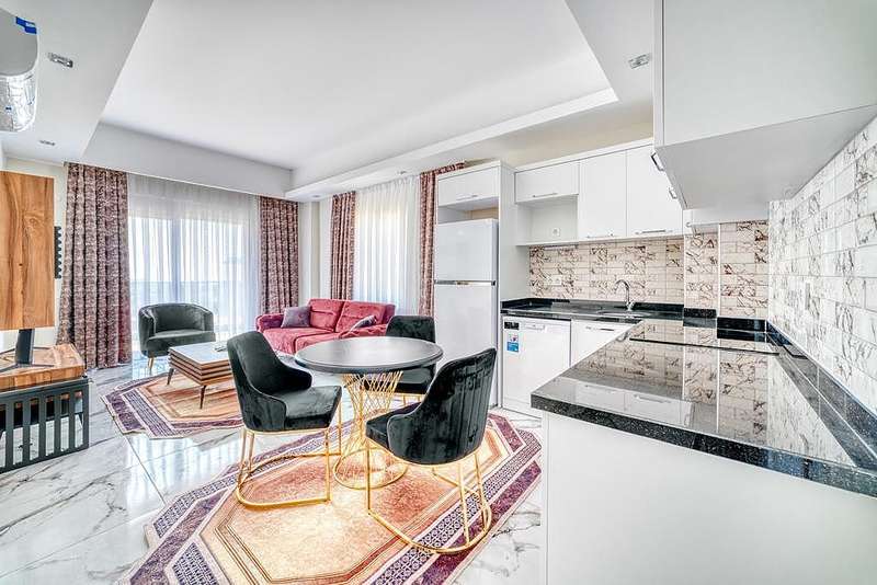 The complex includes different types of apartments, from 1-bedroom apartments to 3-bedroom penthouse duplexes, to appeal to all segments of society. Apartments in Alanya have carefully crafted features such as modern double-glazed PVC windows, high ceilings, high-quality kitchen cabinets and countertops, laminate or tiled flooring, modern tiles, bathroom cabinets, tiled flooring, and shower cabins.