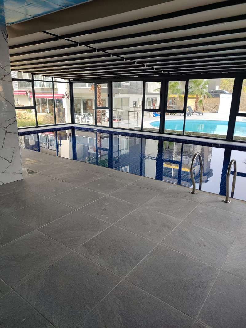 The project, which consists of 4 blocks, has a total of 165 properties, 2 of which are 9-storey and 2 are 5-storey. The complex has open and closed swimming pools, a parking lot, a sauna, a Turkish bath, a steam room, a massage room, a recreation room, a generator, a gym, and a children's playground.