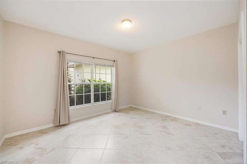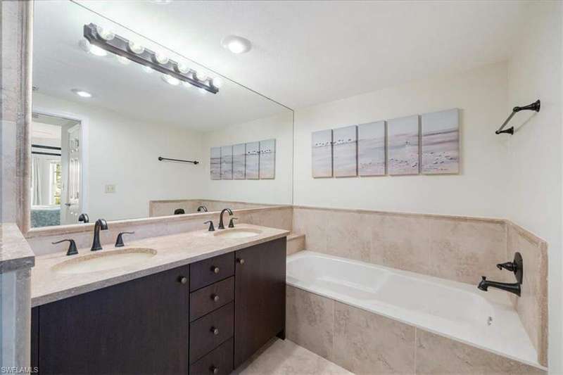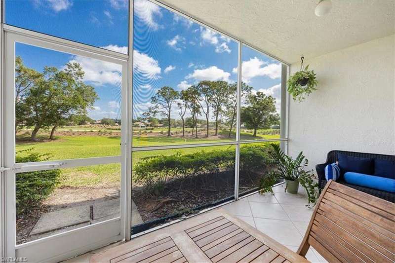 Chardonnay in the Vineyards is simply a great community to enjoy your full time or seasonal residency in SWFL! This fresh and breezy first floor condo offers front and rear screened lanai spaces for optimal living and the rear lanai, accessible from the great room and the primary bedroom, offers serene sunrises and golf course views. Step into this charming condo and be immediately drawn to the inviting view while appreciating the subtle detail throughout. The open, spacious great room/dining room combo flows to the updated kitchen complete with pretty ceiling detail and white cabinets. A second dining area can also function perfectly as a quiet workspace or a lively game night spot. The primary bedroom and bath are well-appointed with an updated shower, separate tub and dual sinks. Featuring a brand-new A/C system installed in August 2025, this impeccably maintained residence offers comfort and care at the highest standard. Located only 5 miles from sandy gulf beaches, and walking distance to Crossroads Market Shopping Center and Physicians Regional, a multitude of dining and shopping destinations, arts centers and nature trails, this is an ideal location for enjoying everything Naples. Vineyards Country Club offers several levels of optional membership which can include 36 holes of Championship Golf, Pickleball, Bocce, Har Tru Tennis courts, Wellness/Fitness Center, Spa, Saltwater Lap pool and a Halotherapy Salt Room!