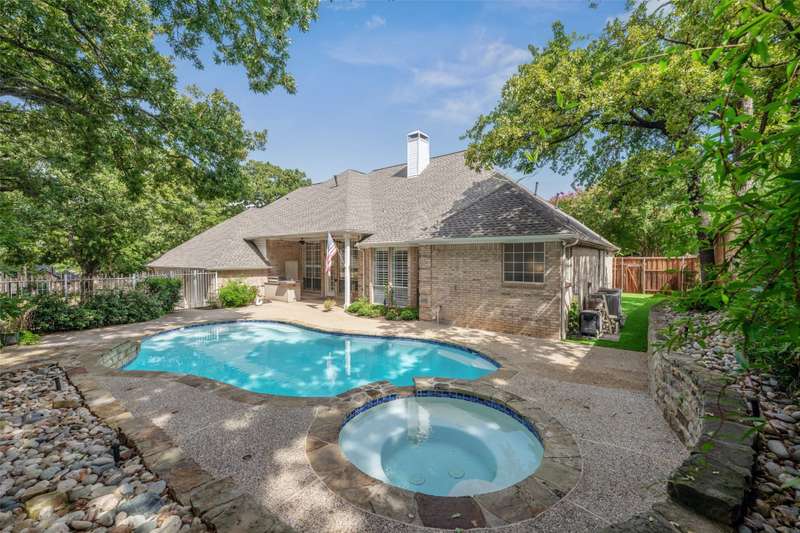 Tucked beneath a canopy of mature trees on a beautifully landscaped corner lot, 806 Shadow Glen Drive is more than a homeits a private retreat where timeless charm meets modern comfort in the heart of Southlake. From the moment you arrive, the welcoming front porch and manicured gardens invite you to slow down and stay awhile. Offering 3 spacious bedrooms, 2.1 baths, and 2,790 SF of refined living space in Carroll ISD.Step inside to discover hand-scraped hardwood floors, vaulted ceilings, and a light-filled open layout. The expansive living room features a striking fireplace, a wet bar, and views of the backyard oasis. The chefs kitchen is equipped with granite countertops, a gas cooktop, an island, double ovens, and ample cabinetryperfect for everyday living or entertaining.Retreat to the serene primary suite, complete with a sitting area, fireplace, dual vanities, a custom closet system, a soaking garden tub, and a separate shower. Two additional bedrooms share a well-appointed Jack-and-Jill bath, and theres a dedicated office and formal dining area for added flexibility.Outdoors, enjoy a heated pool and spa, built-in grill, and multiple covered patios surrounded by mature trees and manicured landscapingideal for year-round enjoyment. Additional highlights include a rear-facing oversized 2-car garage, a half bath, and a full-size laundry with a utility sink.Located in the beloved Timber Lake community, this home includes access to scenic walking trails, lakes, tennis courts, a clubhouse, and a sparkling community poolall within the award-winning Carroll ISD.The vibrant Southlake Town Square is just minutes awayoffering upscale boutiques, chef-driven restaurants, charming cafes, and seasonal festivals. From date nights and holiday strolls to afternoon shopping sprees, this walkable village center elevates everyday living with small-town warmth and big-city convenience.