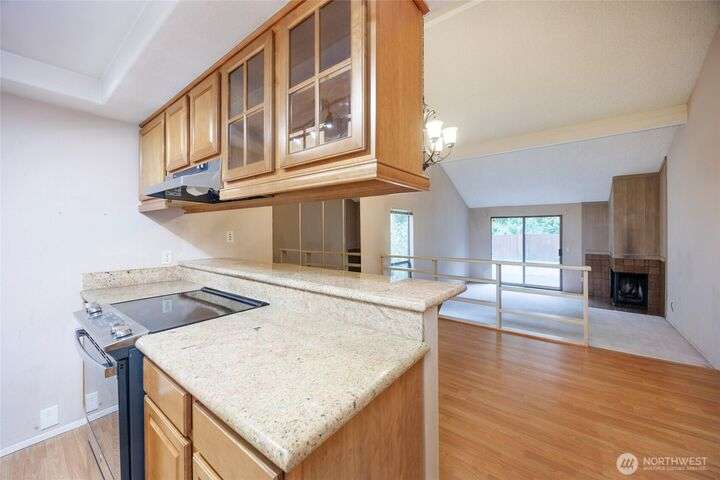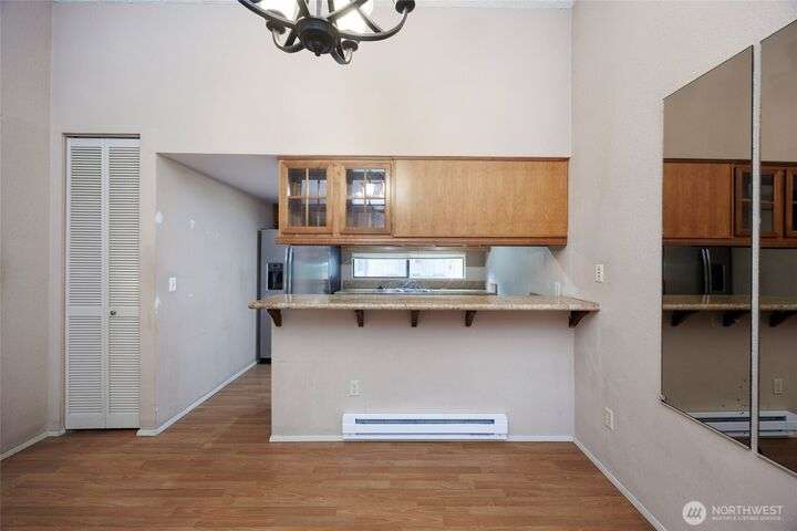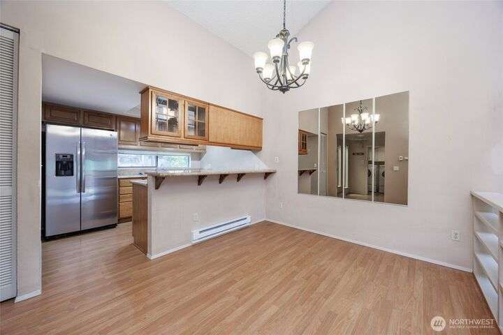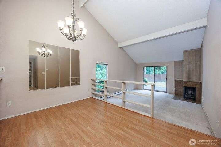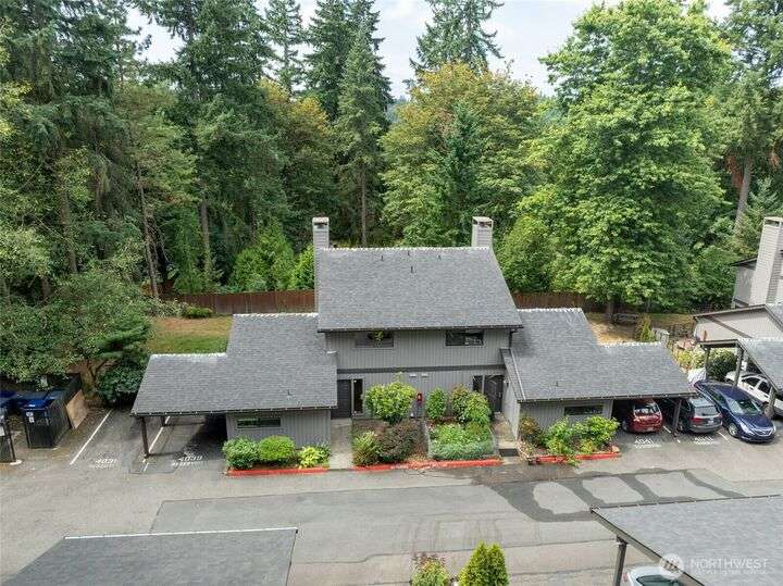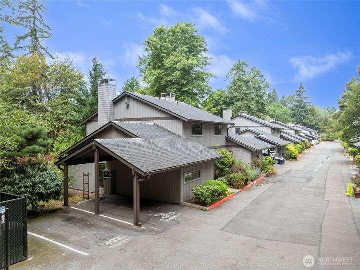 Prime location offering the best of urban living & tranquility. End-Unit turn-key townhome w/ 2 story vaulted ceilings. Updated kitchen featuring granite counters, breakfast bar, & ample cabinet space. A separate dining area provides an ideal setting for gatherings & entertaining. The smart, flowing layout ensures a seamless transition between spaces. Primary suite ideally situated on the main floor w/en suite & serene backyard views. Upstairs, two generously sized guest bedrooms w/ample closet space, & share an adjacent ¾ bath. This private corner unit w/ a huge semi-private backyard, lives like a standalone house. Two dedicated parking spots. No Rental Cap. Close to everything: minutes to Microsoft, downtown Bellevue, Kirkland & Redmond.