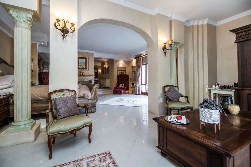 Luxurious Estate with Two Residences in a Private Oasis Location: Nestled close to top private schools and exciting new developments, this elegant estate offers secure, luxury living on a sprawling 1.1 ha erf. This property is an exceptional blend of privacy, sophistication, and ample space, making it the perfect sanctuary for discerning homeowners. Main House (~ 1900 sq. m): This main residence is a masterpiece of architectural design and luxurious comfort, featuring: Bedrooms: Bedroom 1 (La Bleue): Located on the ground floor, this large bedroom opens directly to the swimming pool, patio, and garden area, and includes a full bathroom. Bedroom 2 (La Charmant): Upstairs, this spacious bedroom features an enclosed ensuite with a corner bath, shower, heated towel rails, double basins, Romeo and Juliet balcony, and air-conditioning. Bedroom 3 (La Amor): Upstairs, a large bedroom with an open-plan bathroom, including a bath, large shower, toilet, air-conditioning, and a private balcony. Bedroom 4 (La Rouge): Another upstairs large bedroom with an enclosed ensuite, featuring a shower, bath, double basins, air-conditioning, and a large balcony. Bedroom 5 (La Afrique): This upstairs bedroom is smaller but cozy, with a walk-in cupboard, and a combination of carpet and tiles. Bedroom 6 (La Masquerade): The expansive main bedroom includes a large walk-through dressing room, TV room, large balcony, separate enclosed toilet with basin and bidet, open-plan shower, large bath, store room, double basins, underfloor heating, and a fireplace. Bathrooms and Toilets: 5 Full Bathrooms 2 Guest Toilets Living and Dining: Formal Dining Room: Elegant space perfect for hosting, complete with a wine cellar. Upstairs Living Area: Features a fireplace and opens up to an open patio overlooking the garden. TV Room: Cozy and ideal for family entertainment. Kitchen and Utility Rooms: Gourmet Kitchen: Includes a dining room area, pantry, scullery, store room, and laundry. Patio with Bar: Perfect for outdoor entertaining. Parking: 5 Garages 2 Carports: Accommodates 3 cars. Outdoor Amenities: Swimming Pool: Central to the outdoor entertainment area. Office/Study: Includes a store room. Outside Buildings: Enhancing the estate’s allure are several outbuildings designed for guests, staff, and additional storage: Guest Rooms: 3 Guest Rooms: Each ensuite with full bathrooms; two rooms equipped with air-conditioning (La Fleurs, La Jardin, La Maquerade). All rooms feature wooden decks. Entertainment and Utility: Large Wooden Deck with Braai: Ideal for outdoor gatherings. Garden Store and Extra Large Store: Provides ample storage space. 2 Staff Quarters: Comfortable accommodations for live-in staff. Gardens and Recreation: Borehole and Irrigation System: Ensures lush, well-maintained gardens. Vegetable and Fruit Gardens: For sustainable living. Tennis Court with Tennis House: Perfect for sports enthusiasts. Petanque Court: Adds a touch of European charm. Ample Parking: Two gates for convenient access. Second House: The second residence on the property is perfect for extended family or guests, offering: Living Spaces: 4 Bedrooms 2 Bathrooms: One full bathroom and one with a shower and toilet. Guest Toilet Recreation and Utility: Sauna: For relaxation and wellness. TV Room: A cozy space for entertainment. Open Plan Kitchen, Dining, and Living Room: Modern and spacious, ideal for family gatherings. Games Room (Man-Cave): A perfect retreat for leisure activities. Stoep: A charming outdoor area to enjoy the tranquil surroundings. Summary This exceptional estate provides an unparalleled blend of luxury, privacy, and ample space for both relaxation and entertainment. Whether you’re looking to host large gatherings, accommodate extended family, or simply enjoy a serene lifestyle, this property promises a life of comfort and elegance. Don’t miss the opportunity to own this exquisite oasis!