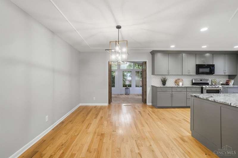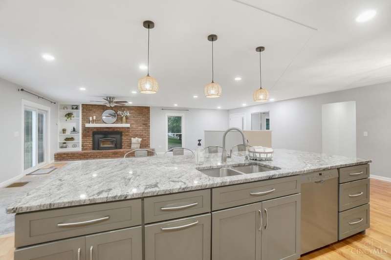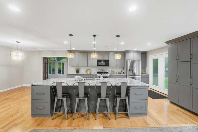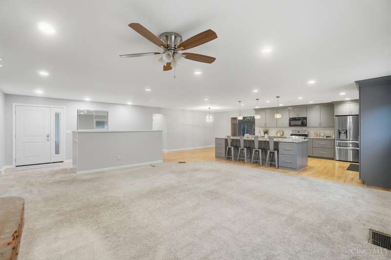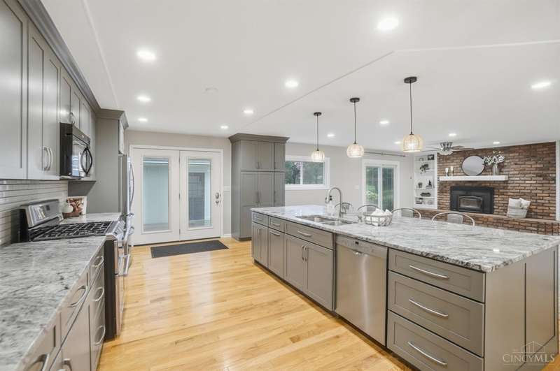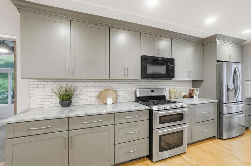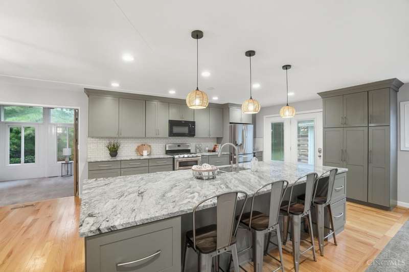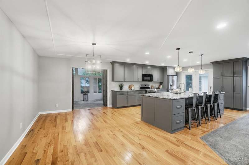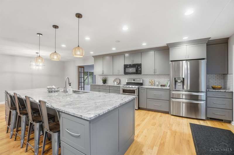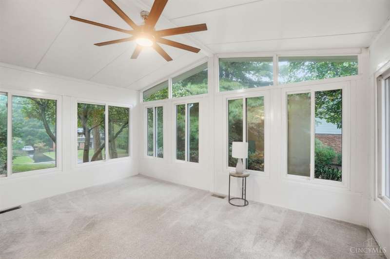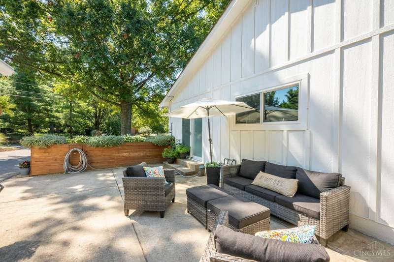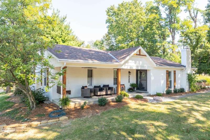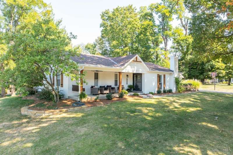 Terrific, renovated ranch w/fabulous curb appeal & welcoming front porch. Open floor plan features a cook's kitchen w/large island, quartz counters & SS appl. Four-season rm provides year-round living space. 3 spacious BDs include primary suite w/ renovated spa-like BA. Finished LL offers space for media rm, gym, or office. Beautiful lot w/mature trees, patio, & 2-car garage. Prime Blue Ash location near shops, dining, parks & highways.