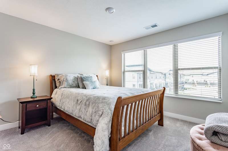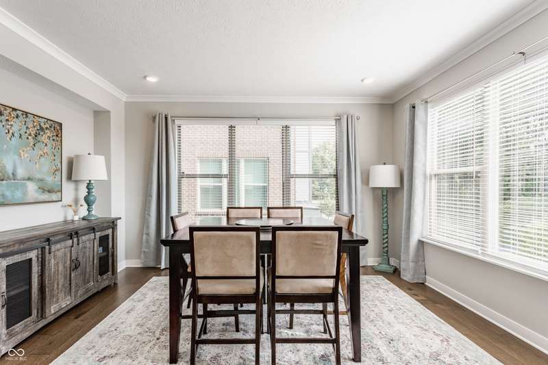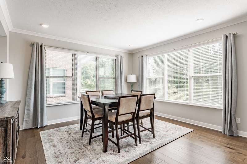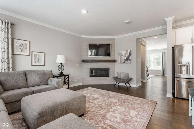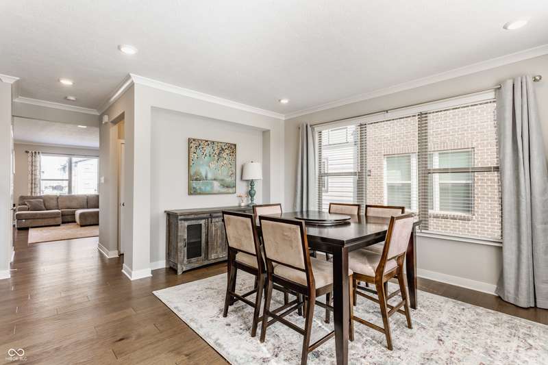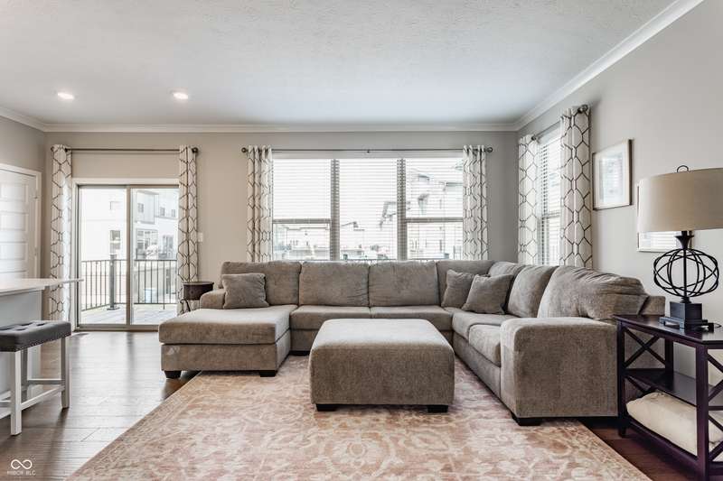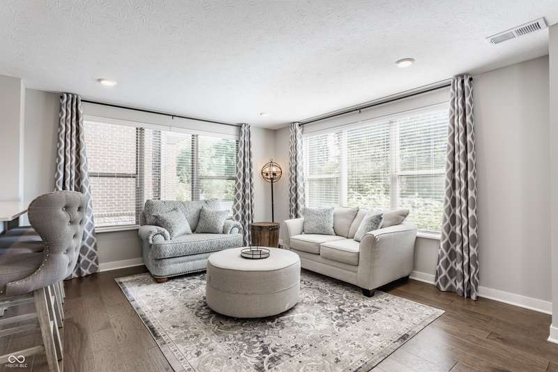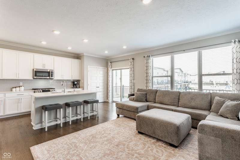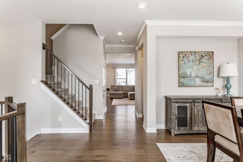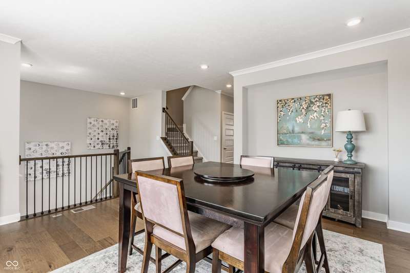 This light-filled END UNIT townhome, overlooking the park, has been meticulously maintained and is move-in ready. The gourmet kitchen features GE Cafe stainless steel appliances, quartz counters, and a spacious island. Enjoy engineered hardwood floors on the lower and main levels, a finished lower level with a wet bar and half bath, and smart home technology built-in throughout. Lawn care and snow removal included! Saxony is one of Fishers' most sought-after communities, offering parks, playgrounds, scenic trails, and even Saxony Lake & Beach. Just minutes from I-69 and Hamilton Town Center's shopping, dining, and nightlife. Experience luxury living at Saxony with this stunning Lennar townhome - welcome home!