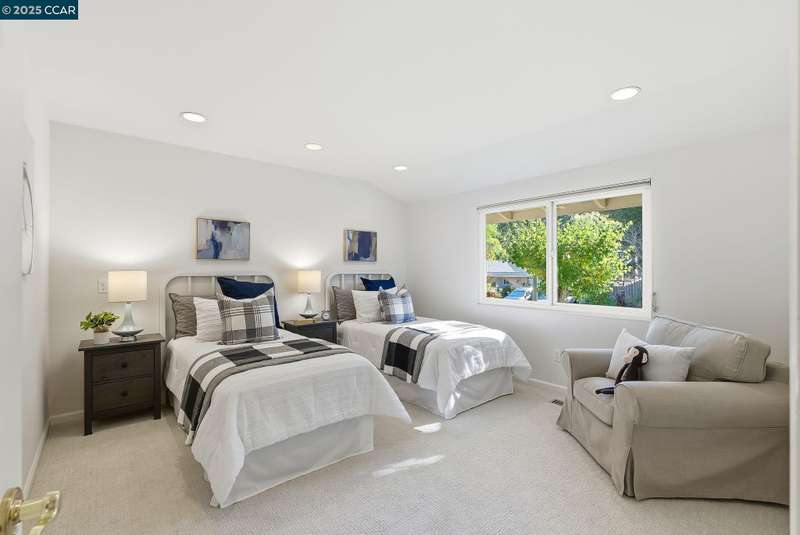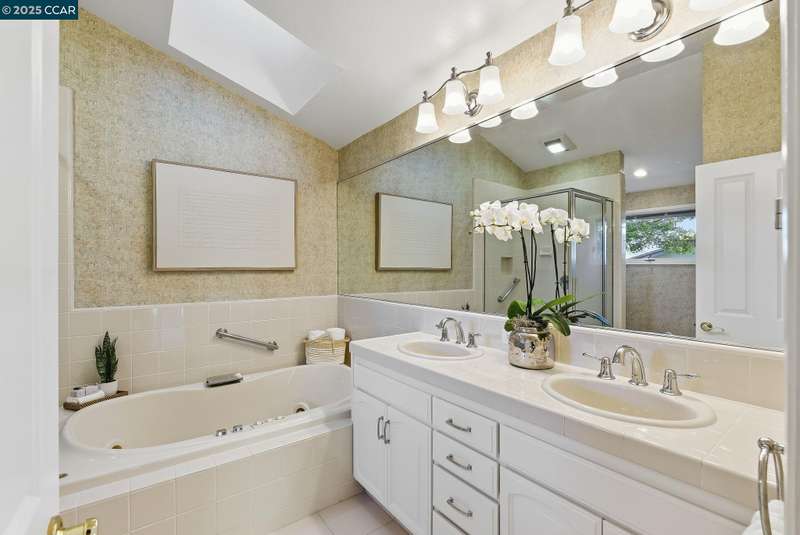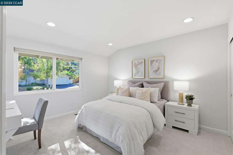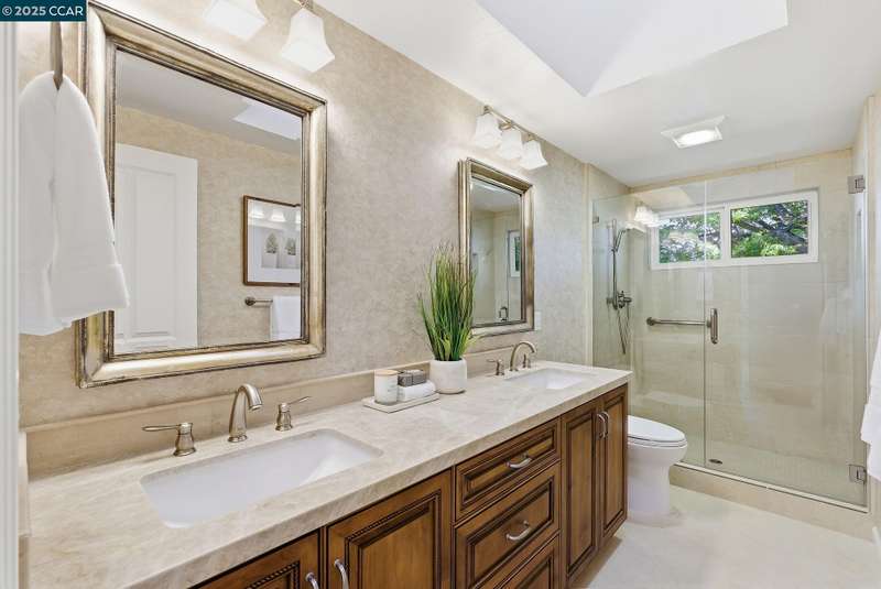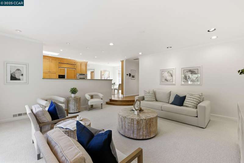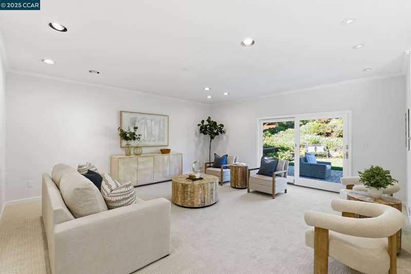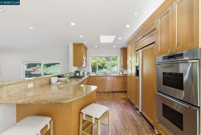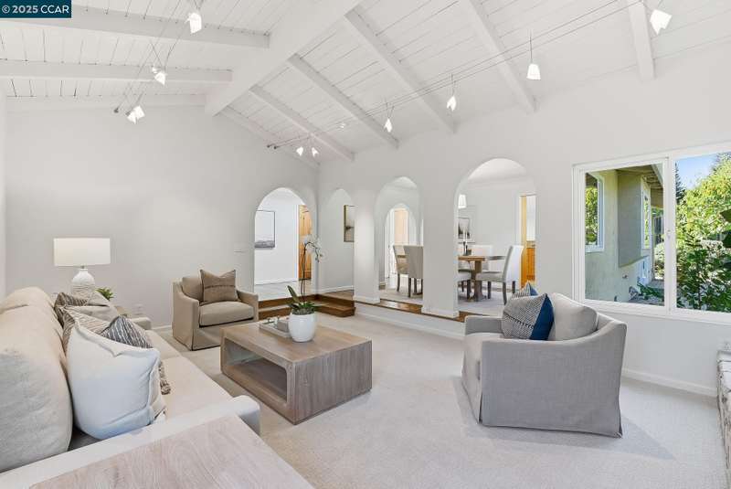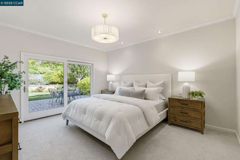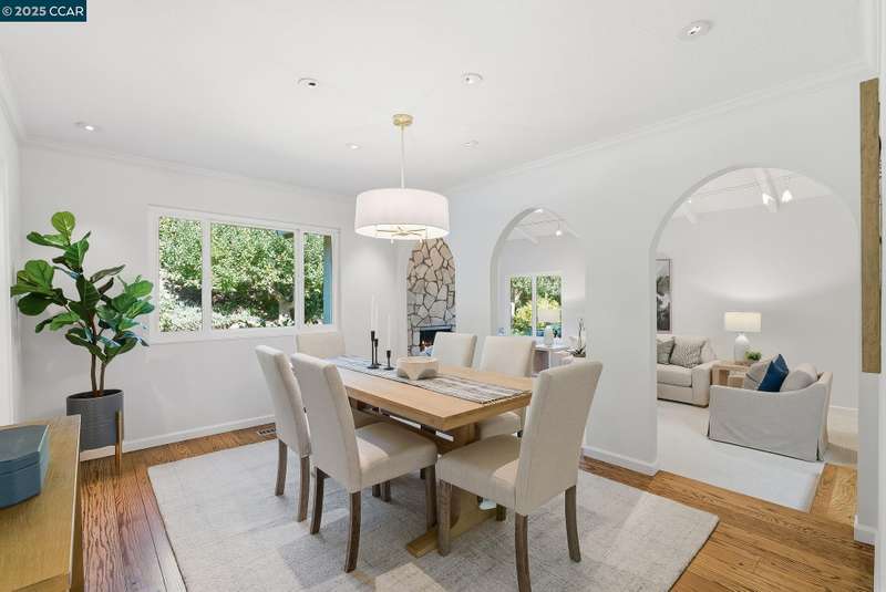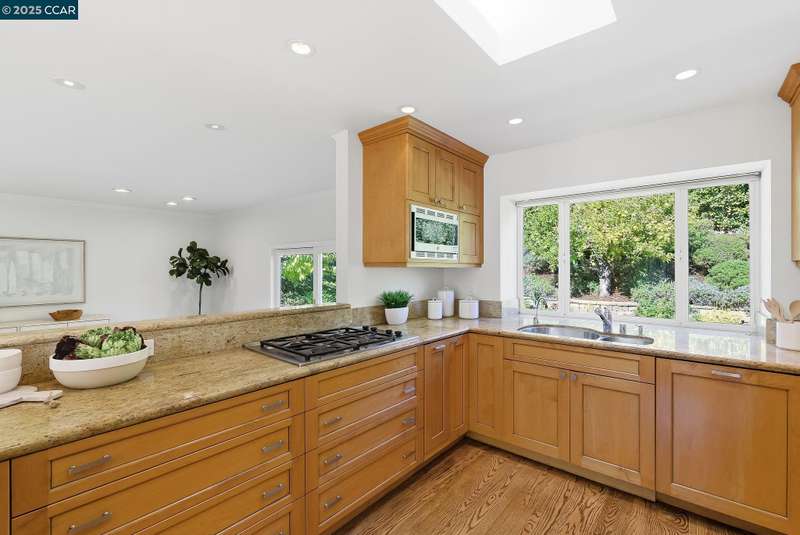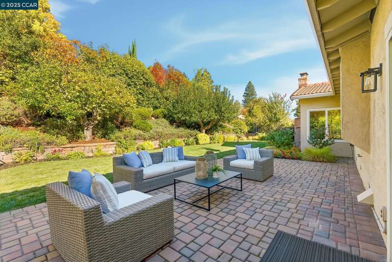 This single-story home in Campolindo has been beautifully updated throughout. From the rich cherry-wood entry doors and lush courtyard, to the kitchen open to the oversized family room, to the yard with flat lawn, fruit trees and tons of greenery, attention to detail is apparent.There are 4 bedrooms and 2.5 baths in more than 2500 square feet. The kitchen with breakfast bar and dinette has light-wood cabinetry, granite countertops, double ovens, and gas range. It opens to the large family room with sliders to the yard. The living room with vaulted ceiling and stone fireplace and formal dining room offer plenty of space to entertain. The bedroom wing features the primary, which opens to a patio and has views of the yard. The primary bath with vaulted ceiling and skylight has a walk-in closet, jetted tub and dual vanities. There are 3 more bedrooms and a remodeled hall bathroom. The professionally landscaped yard with paver patio and lawn has apple, persimmon and lemon trees. There is a powder room, laundry room with storage and 2-car garage. The home has hardwood flooring, dual-paned windows, recessed lights, skylights, an EV charger and Generac generator. Conveniently located close to top-schools, the Cabana Club, and Rim Trail access, come make this your home sweet home.