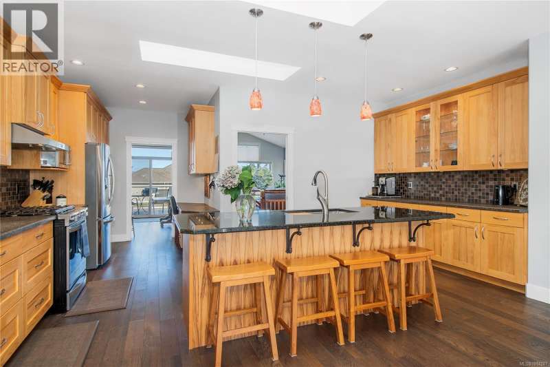 Welcome to 2953 Pacific View Terrace, a beautifully designed family home offering comfort, space, and stunning ocean views. Upstairs, the heart of the home features a thoughtfully laid-out kitchen with ample storage and a generously sized island that invites everyone to gather. The dining area flows seamlessly onto the back deck, perfect for alfresco meals and summer entertaining. A spacious living room opens onto the front deck, where you can take in the coastal scenery. The primary bedroom includes a walk-in closet and a private 4-piece ensuite, while two additional bedrooms provide plenty of space for the rest of the family. Downstairs, you'll find a large family room ideal for movie nights or casual hangouts, a full 4-piece bathroom, a versatile den perfect for a home office or guest space, a generous laundry room, and an additional bedroom offering privacy and flexibility for guests or extended family. The grand entrance sets the tone with its welcoming atmosphere, making it the perfect spot to greet friends and family. Outside, the yard offers ample room for your boat and RV, giving you the freedom to explore the island’s natural beauty. Located close to shopping, scenic trails, and excellent schools, this home blends convenience and charm in one perfect package. Schedule your showing today. (id:58403)