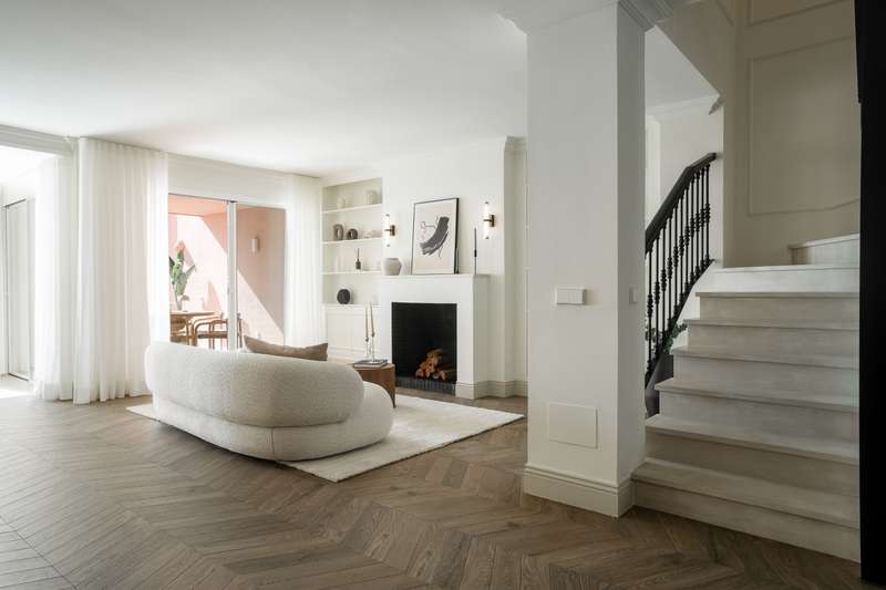 This beautifully renovated 4-bedroom, 3-bathroom duplex is the perfect blend of Scandinavian design and Mediterranean living. It’s bright, spacious, and thoughtfully designed, offers a warm and inviting atmosphere with natural wooden details, a sleek microcement staircase, and elegant Scandinavian-style stucco moldings. The open-plan kitchen, dining, and living area flows effortlessly onto a south-facing terrace, where unobstructed sea views set the scene for both relaxing mornings and unforgettable sunsets. Large windows fill the home with natural light, enhancing its airy and cozy feel. Located in a calm and beautifully maintained community, residents can enjoy a serene atmosphere and a lovely communal pool area. With La Quinta Golf course, top-rated restaurants, and Marbella’s vibrant lifestyle just minutes away, this home is a rare find for those seeking timeless design, breathtaking views, and a prime location.