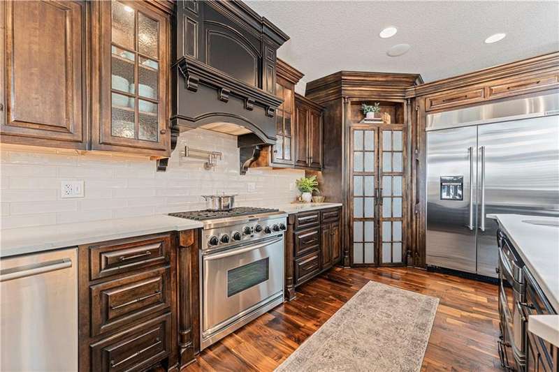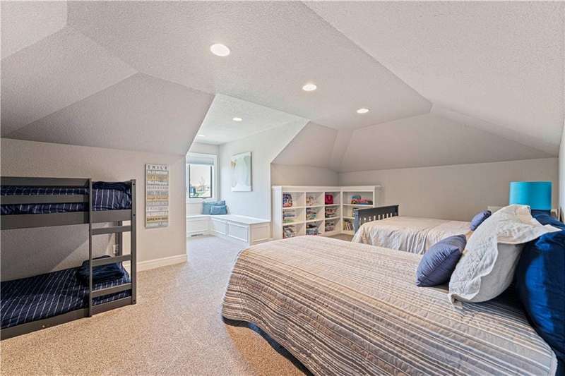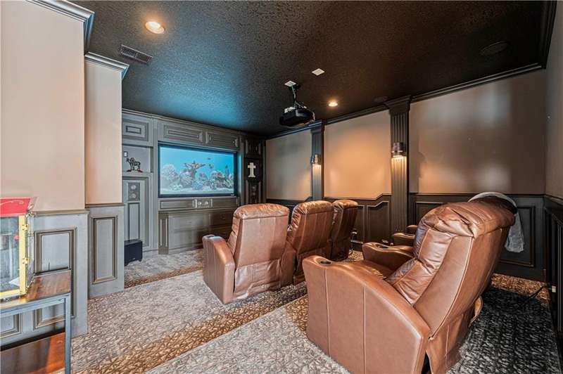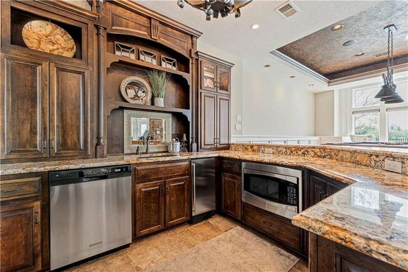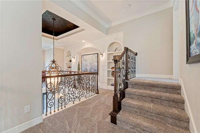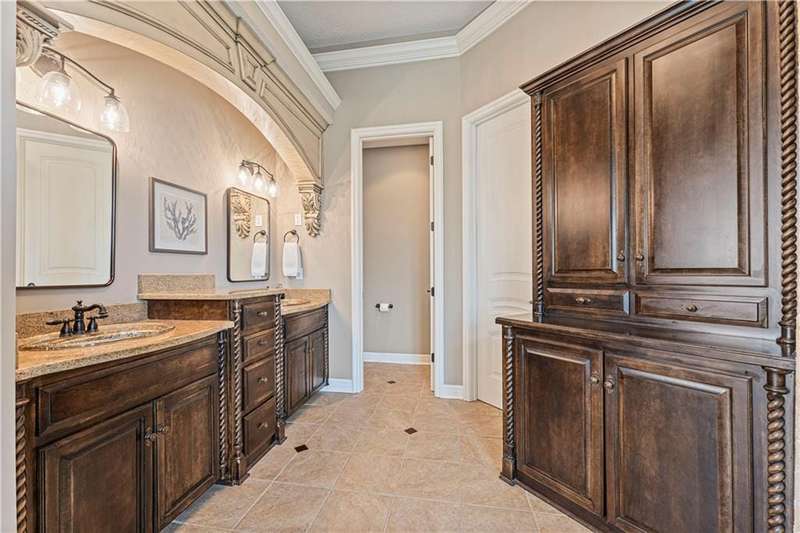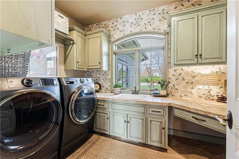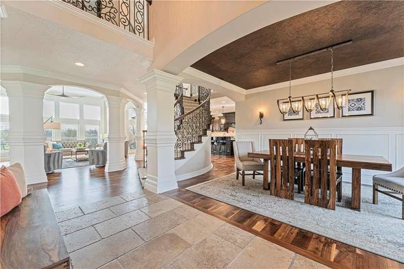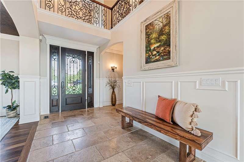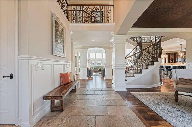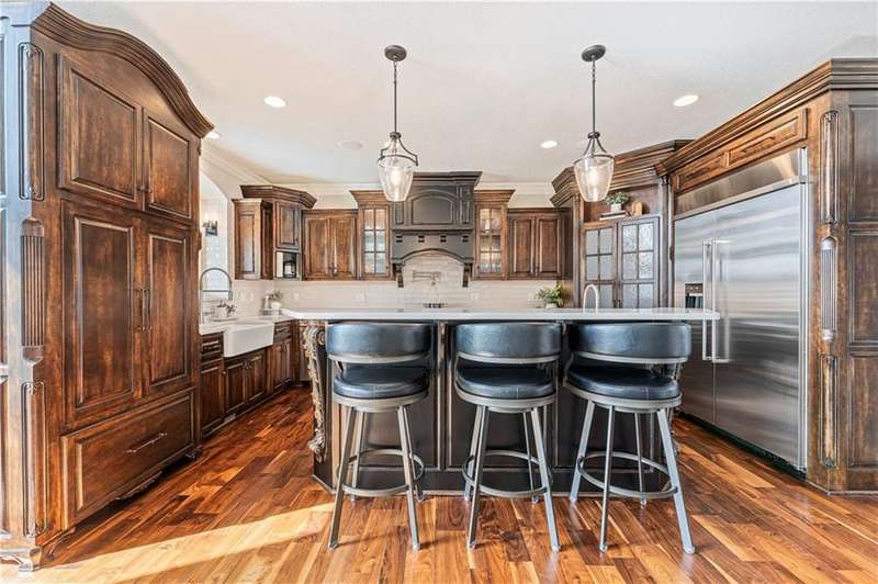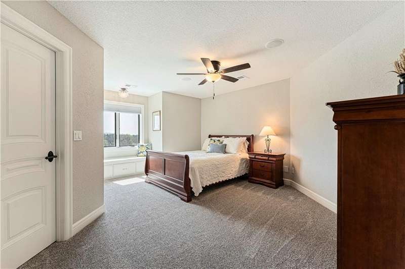 Welcome to this beautifully appointed resort style home, backing to water and featuring updates and designer touches at every turn! Main level living at its finest, with office & formal dining, as well as a gourmet kitchen w/ double ovens, laundry/mud room, great room and beautiful owner's suite. Stunning walnut floors have been refinished, carpet is all new, and there is fresh paint throughout! Upstairs, you'll find 3 additional bedrooms, each with an attached bathroom, along with a loft area for play or study. A bonus room is also available and can be used for so many things: bunkroom, play or office space! The star of the show is the walkout lower level, featuring 10.5 ft ceilings, wet bar, wine cellar, rec room, home theatre, gym AND a basketball court where you can also practice your pickleball moves! Continue the party outside: pool, spa, firepit, outdoor kitchen, covered porch, fresh landscaping and stunning water views! For more outdoor entertainment, the neighborhood offers 3 stocked ponds for fishing, and trails for walking. Beautiful (yes, freshly painted, epoxied and refinished built ins) 4 car garage fits all your vehicle and storage needs. With easy highway access and close to KCI and Northland amenities, the location can't be beat. This is truly an entertainer's dream home- make it yours to enjoy the summer with family and friends!