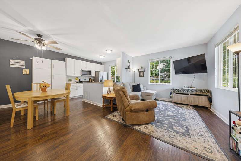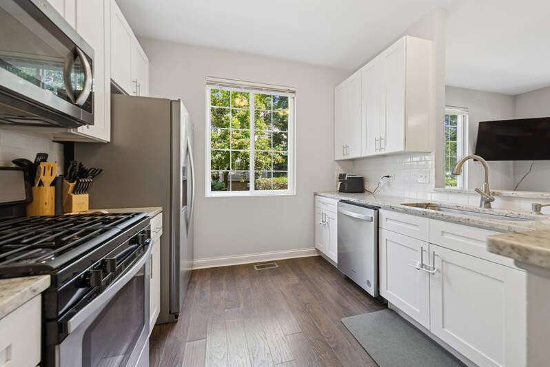 MOTIVATED SELLERS! Welcome to this large, end-unit townhome in Wespark. With exposure on three sides and an attached, two-car garage, this unit offers the best floorplan. The open layout supports entertaining with easy flow between the kitchen, dining room and living room. The updated kitchen has granite countertops with white cabinets, stainless steel appliances and subway tile backsplash. The dining room has enough space for a large table and coffee station. Rounding out the first floor is an updated half-bath and full-sized laundry. The second-floor features hardwoods in all bedrooms and an additional reading nook, that could also function as an office space. The extra-large primary bedroom offers a walk-in-closet and attached bath, with updated flooring, tile, vanity and lighting. The second bedroom is large enough to accommodate a queen sized-bed and also has a walk-in closet. Rounding out this level is the third bedroom and a recently updated hallway bath. Recent updates include a new roof (2024), water heater (2020), microwave and dishwasher (2020).