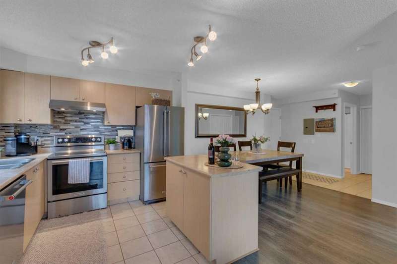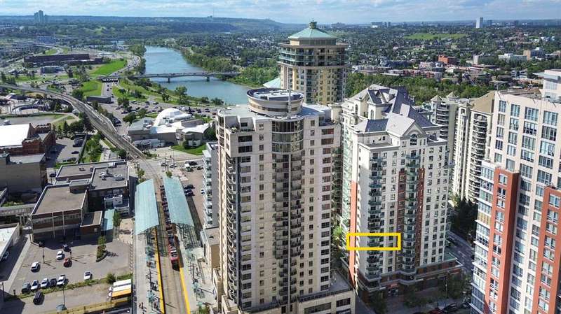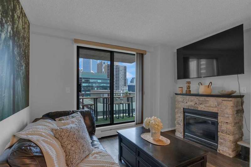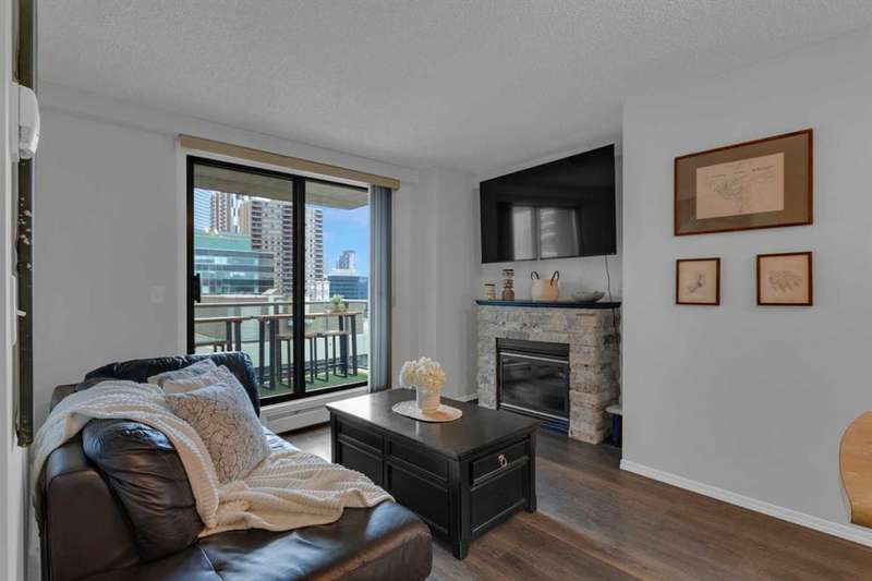 Welcome to downtown living on the west end at TARJAN PLACE! This bright 2-bed, 1-bath END UNIT makes the most of its east & south exposure—morning coffee and sunny afternoons on your private balcony with BBQ gas hookup, yes please! Inside, you’ll love the easy-care vinyl plank flooring, cozy gas fireplace for winter nights, and a sleek kitchen with newer KITCHEN AID, STAINLESS STEEL appliances. Both bedrooms are well-sized, the 4-pc bath is tidy and functional, and there’s FULL SIZED, in-suite laundry for the win. The building itself adds to your comfort with the convenience of a concierge and the security of a heated underground parking stall just for you. You'll also love the secured package delivery room, bike storage and spacious fitness centre. Step outside and you’re only minutes from the C-Train, Bow River pathways, coffee shops, and all the energy of Calgary’s downtown core. Additional highlights include a freshly updated lobby, low condo fee with ALL UTILITIES included and hang on..... FRONT ROW SEATING on your own balcony for the Calgary Stampede Parade every July! Whether you’re starting out, downsizing, or simply looking for a place with personality and warmth in a premier west-end location boasting quick access in/out of downtown, this fantastic condo is ready to welcome you home. Don't miss the virtual tour under the film reel in the top left corner - call your favourite Realtor and book your private viewing today!