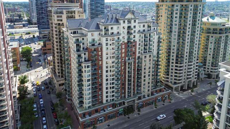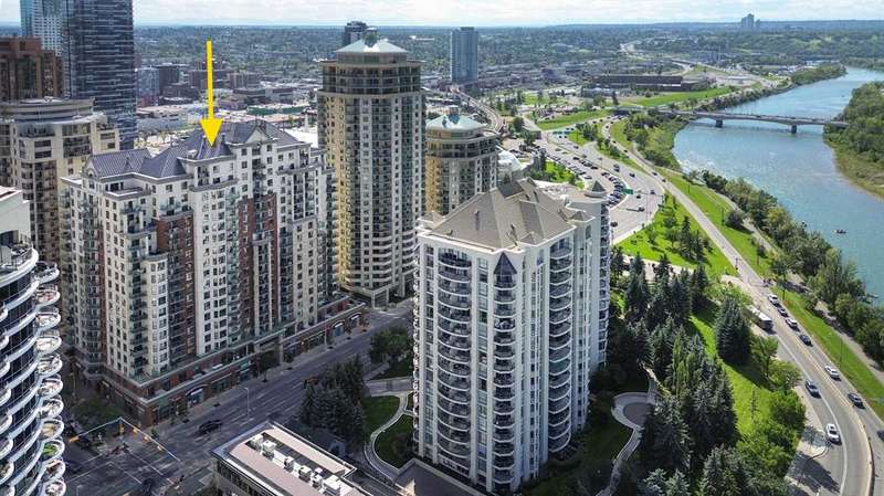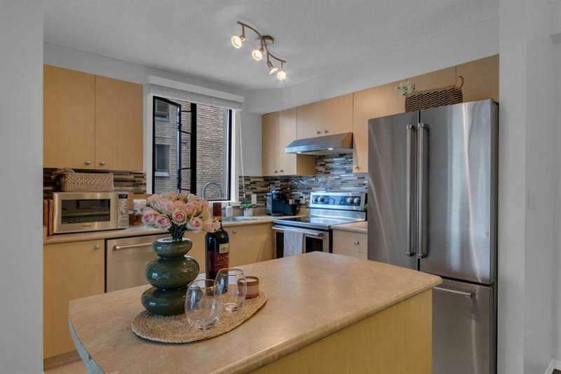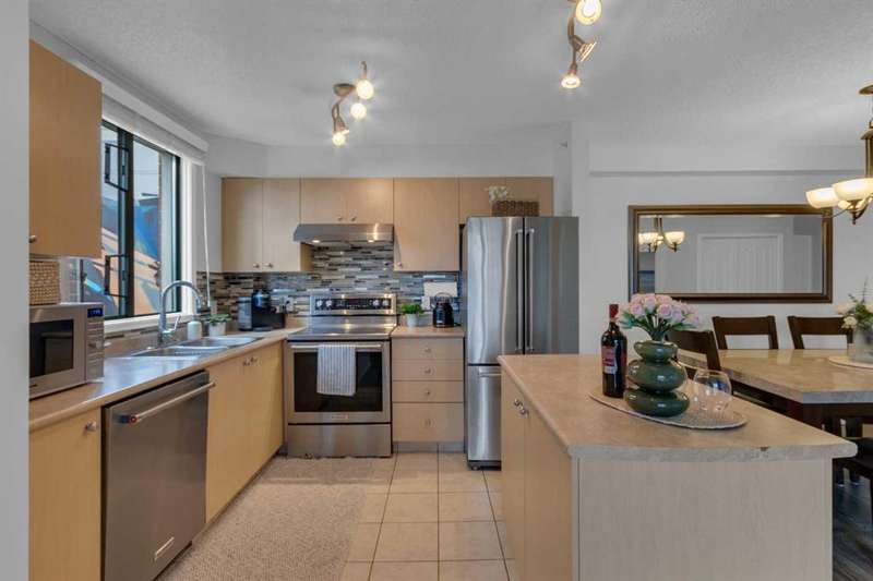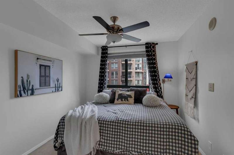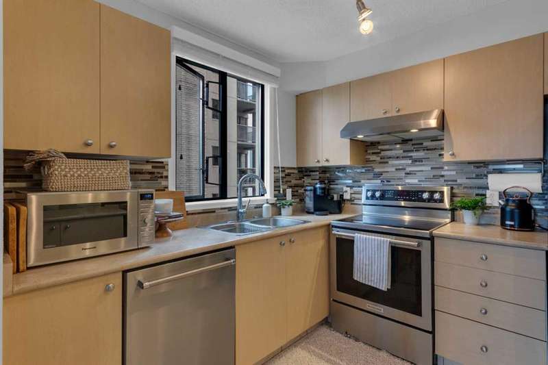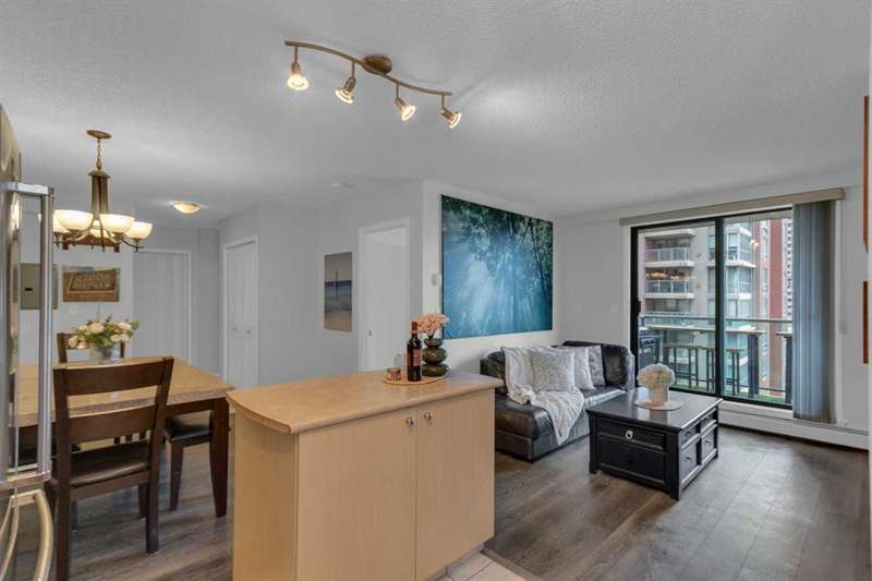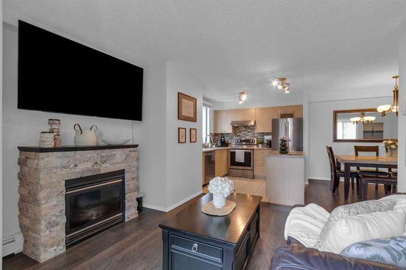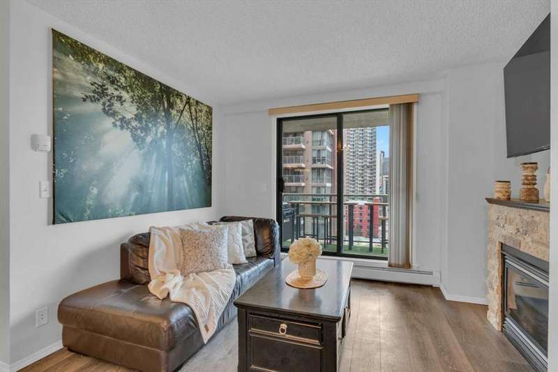Welcome to downtown living on the west end at TARJAN PLACE! This bright 2-bed, 1-bath END UNIT makes the most of its east & south exposure—morning coffee and sunny afternoons on your private balcony with BBQ gas hookup, yes please! Inside, you’ll love the easy-care vinyl plank flooring, cozy gas fireplace for winter nights, and a sleek kitchen with newer KITCHEN AID, STAINLESS STEEL appliances. Both bedrooms are well-sized, the 4-pc bath is tidy and functional, and there’s FULL SIZED, in-suite laundry for the win. The building itself adds to your comfort with the convenience of a concierge and the security of a heated underground parking stall just for you. You'll also love the secured package delivery room, bike storage and spacious fitness centre. Step outside and you’re only minutes from the C-Train, Bow River pathways, coffee shops, and all the energy of Calgary’s downtown core. Additional highlights include a freshly updated lobby, low condo fee with ALL UTILITIES included and hang on..... FRONT ROW SEATING on your own balcony for the Calgary Stampede Parade every July! Whether you’re starting out, downsizing, or simply looking for a place with personality and warmth in a premier west-end location boasting quick access in/out of downtown, this fantastic condo is ready to welcome you home. Don't miss the virtual tour under the film reel in the top left corner - call your favourite Realtor and book your private viewing today!