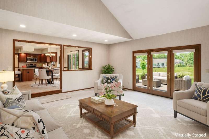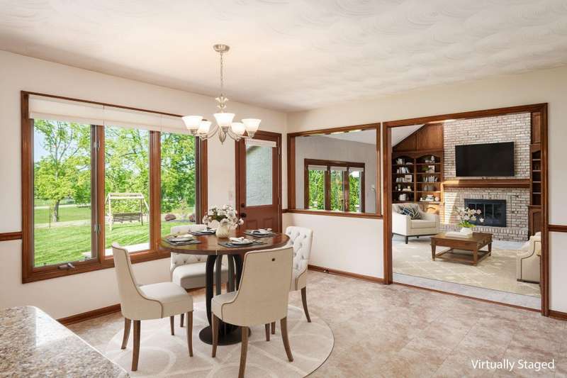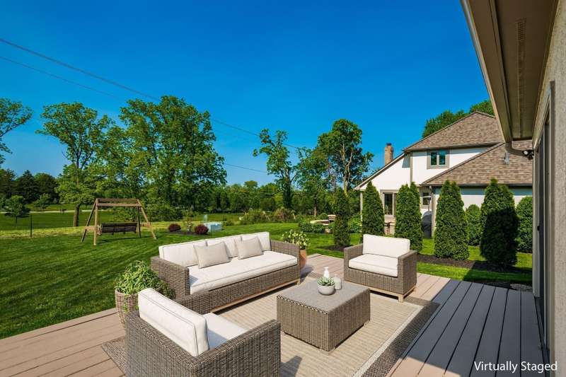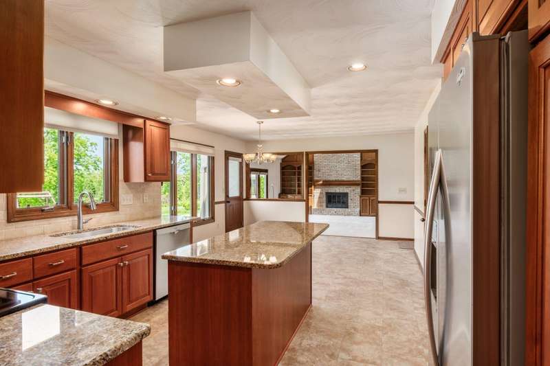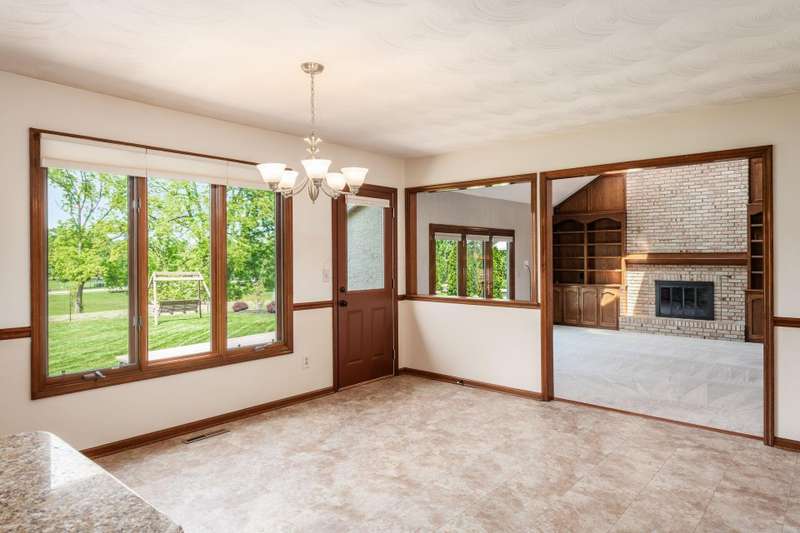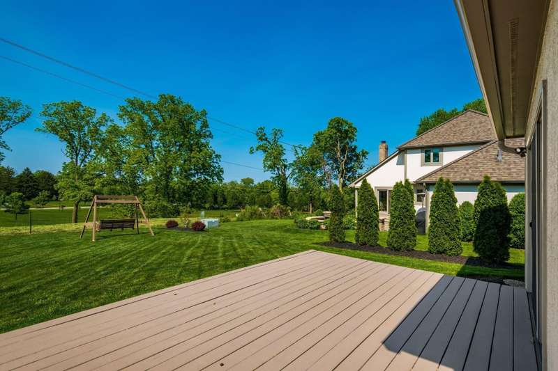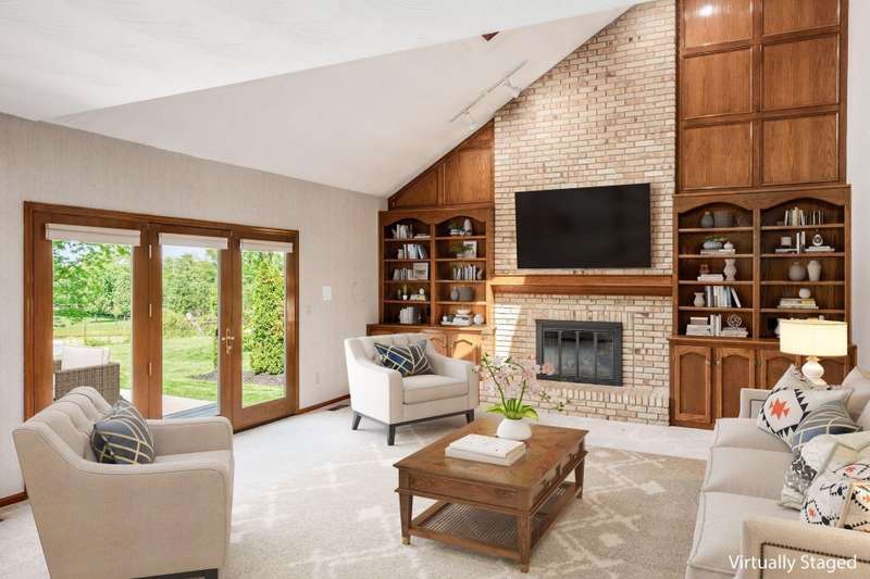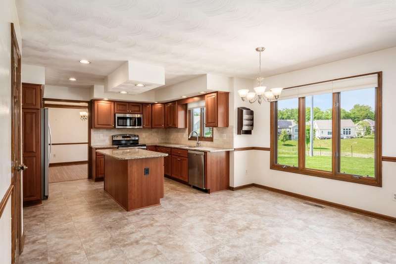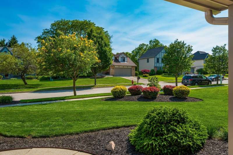 Step into this beautifully maintained, stately home nestled in the desirable Glacier Pass cul-de-sac of River Trace! This impressive 4-bedroom, 2.5-bath residence boasts an array of modern updates. As you walk through the front door, you'll be greeted by a stunning living room adorned with oak flooring that flows seamlessly into the dining room and an updated kitchen. The kitchen features plenty of space for both dining at the island and enjoying meals in the cozy seating area with plenty of pantry and storage space! The open great room invites you outside to a gorgeous deck, overlooking a leveled backyard with picturesque views of the green space and pond. Privacy berms on both dies to create more of a backyard oasis. Heading inside to the second floor, you'll discover a spacious owner's suite, complete with a secret study adjacent to the walk-in closet, along with three generously sized bedrooms and an updated full bath down the hall. The updates are truly remarkable: a new roof, shingles, skylights, and a 6-inch gutter upgrade completed between 2021 and 2022, along with replacement windows in the front and back (from Burgess), and newly painted exterior trim. The home also features completely new drainage piping, a Trane HVAC system (2019) and a gas hot water tank (2023). Additionally, there's a newer sump pump equipped with a backup battery. The garage showcases durable nature stone flooring, an extended length capable of accommodating a truck up to 229 inches, and a nook for extra storage, along with a third parking spot in the driveway. An exterior spot has also been thoughtfully crafted for your trash cans. Truly, there's nothing left to do but move in and start enjoying this amazing home!