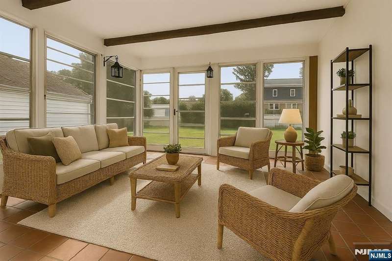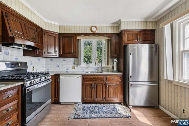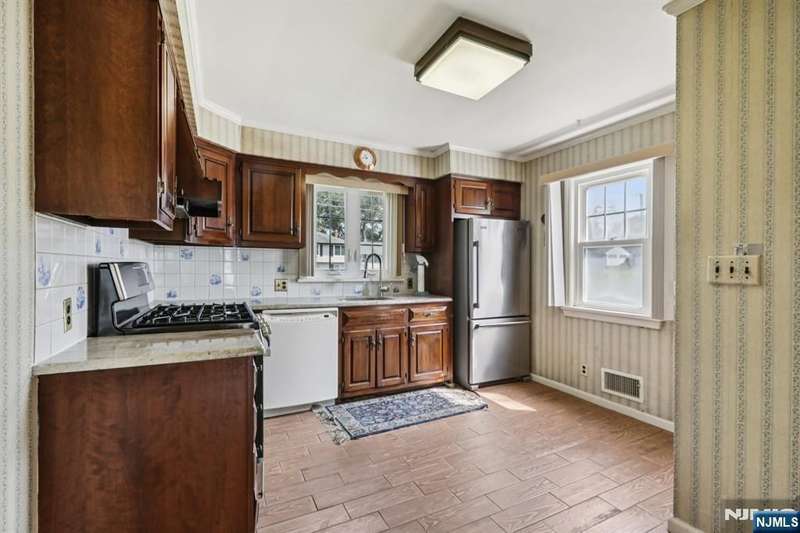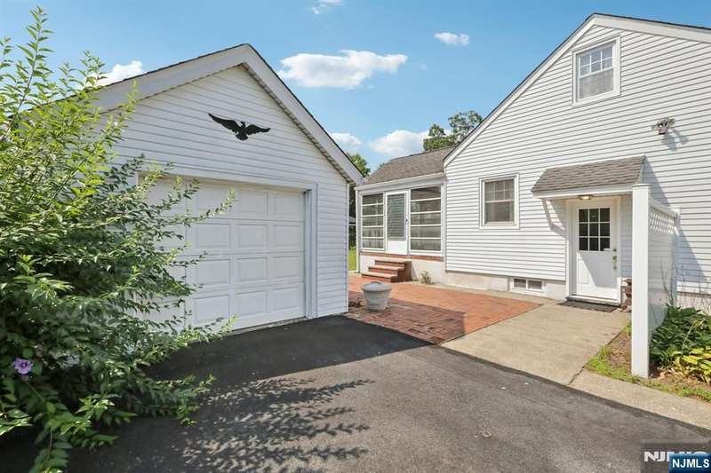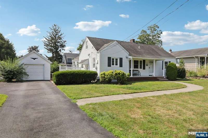 Welcome home to this charming 2 bedroom, 2 bathroom Cape Cod located in a sought-after neighborhood known for its vibrant community. The covered front porch provides a welcoming entry and a cozy spot to greet guests. Step inside to the warm entry foyer that leads into the spacious living room featuring large windows and a wood-burning fireplace perfect for relaxing or entertaining. The living room flows seamlessly into the dining room, ideal for intimate dining or lively gatherings. Sliding glass doors open to a bright sunroom, a perfect spot for morning coffee or evening cocktails, with direct access to the backyard. The kitchen offers custom cabinetry, ample counter space, and stainless steel appliances, ready for your culinary creations. The main level includes the primary bedroom with a large closet, a second bedroom, and a full bath. The full finished basement features a generous family room, den, full bathroom, laundry area, and utilities. A full unfinished walk up attic offers potential for expanded living space. The backyard features a patio ideal for grilling and dining al fresco, plus space for gardening and play. A 1-car detached garage, storage shed, and ample driveway parking provide added convenience. Just moments from NYC transportation, shopping, and dining, this home offers the perfect blend of lifestyle, location, and opportunity. With some thoughtful updates, this home offers incredible potential to become your dream home.
