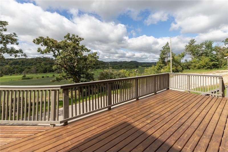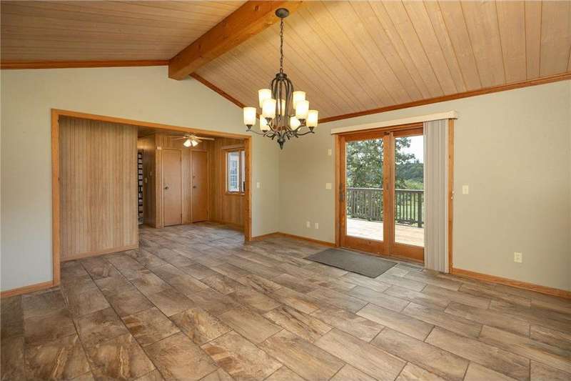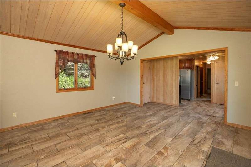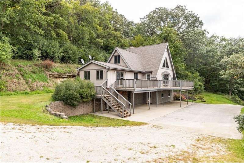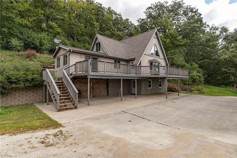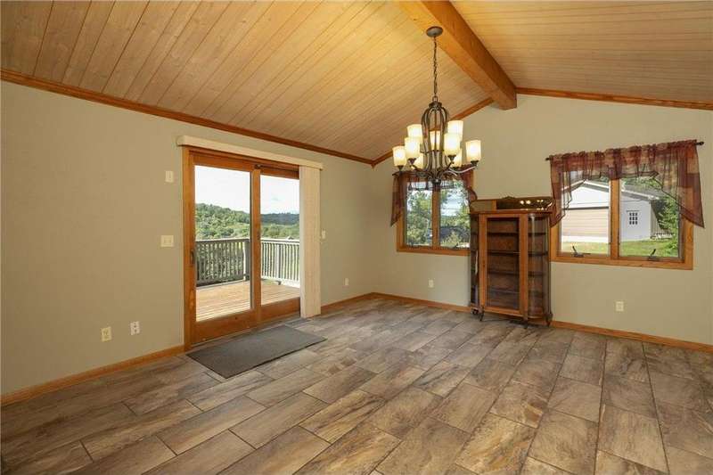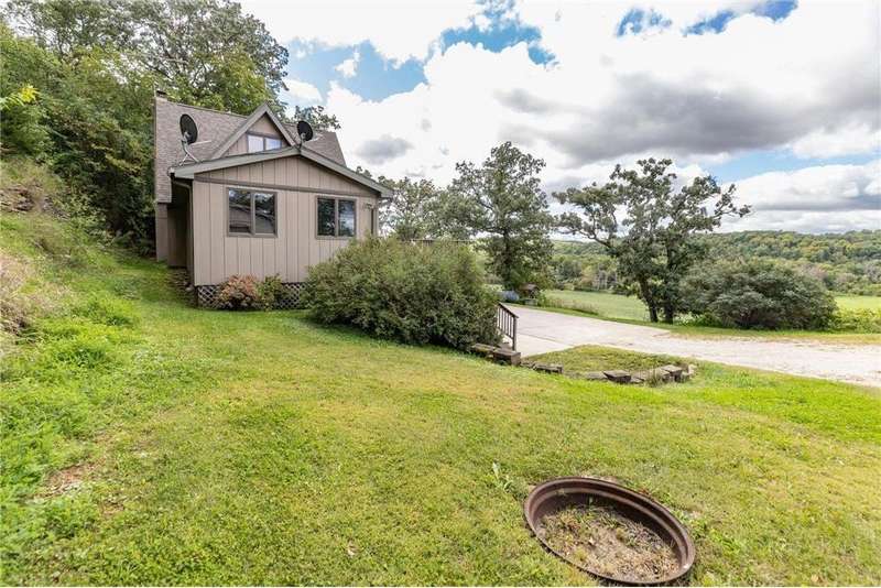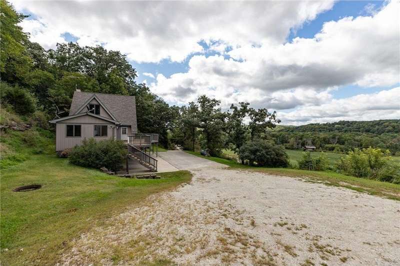 Set on almost 12 peaceful acres with a stunning view of the Root River valley, this unique A-frame is waiting for a new owner to call it home! Features include a beautiful stone fireplace in the great room with a lofted primary bedroom. Main floor bedroom, kitchen, dining, bathroom, laundry, and great room all have maintenance-free flooring. The lower walkout level is finished for extra living space. Home is heated with forced air furnace that is wood burning with propane back*up. Huge 30x40 garage has plenty of space for vehicles and toys. The massive deck is the perfect place to relax with unparalleled views of the valley and incredible sunsets! This gorgeous setting on almost 12 wooded acres is a nature lover's dream! Just minutes from Chatfield, Stewartville, and Rochester.