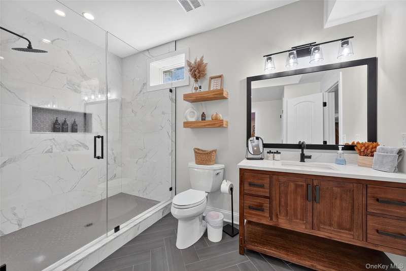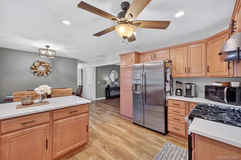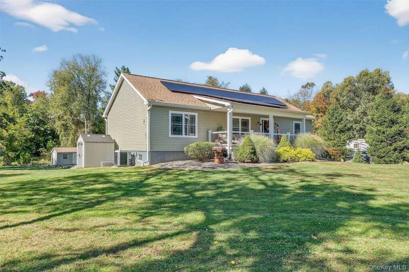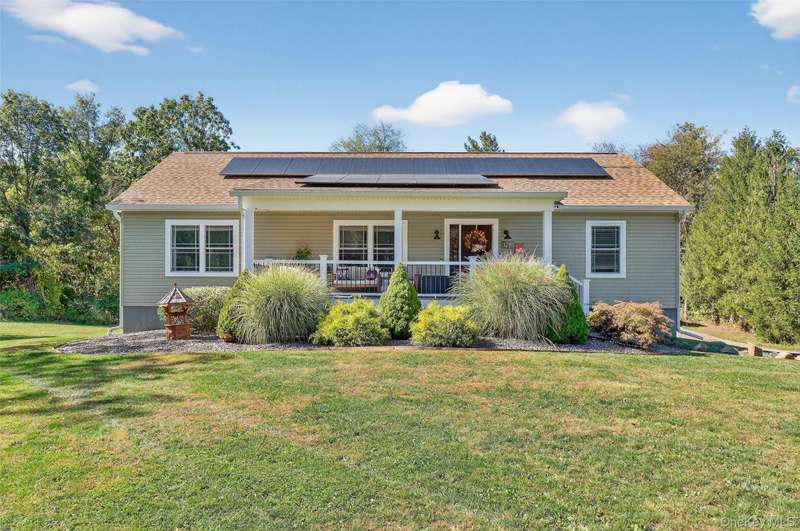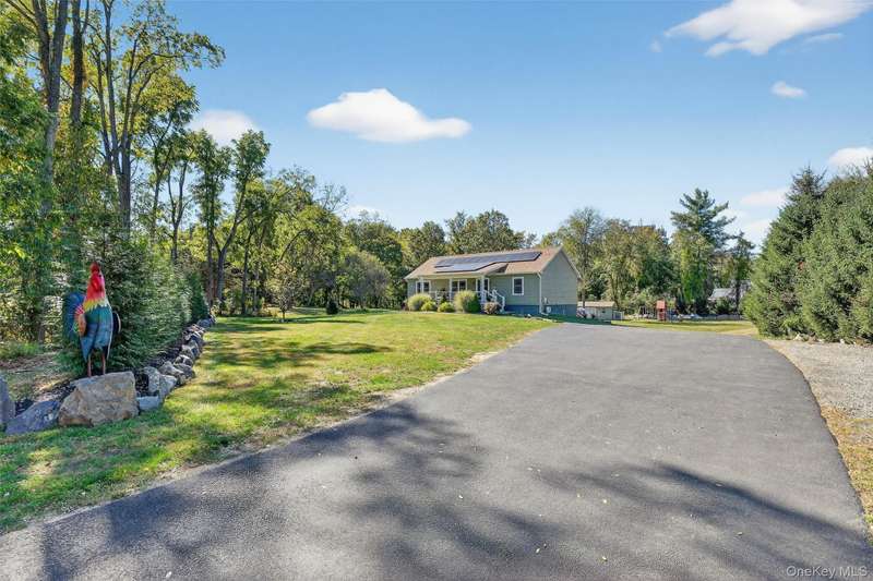 Charming Ranch-Style Home with Solar, Privacy & Designer Basement! Welcome to this beautifully maintained 3-bedroom, 3 full bath ranch-style home, offering the perfect blend of comfort, efficiency, and style. Nestled on a gorgeous, level piece of land, this property is set well back from the roadproviding ultimate privacyyet is just minutes from the Taconic Parkway, I-84, and the heart of town for easy commuting and convenience. Inside, you'll find an open-concept floor plan with beautiful hardwood floors throughout, a sunlit living space, and a thoughtfully designed kitchen and dining area thats perfect for entertaining. The spacious primary suite is set apart from the other two bedrooms for added privacy and features its own en-suite bath. Enjoy the convenience of main-level laundry, making everyday living a breeze. The fully finished walk-out basement is a standout feature, boasting high-end finishes, a cozy gas fireplace, kitchenette, a beautifully finished full bath, and even a potential 4th bedroom or office space. Kids will love the whimsical clubhouse under the stairsperfect for play or storage! Step outside to enjoy the beautifully cleared lot accented by stunning natural boulders, a cement patio for outdoor entertaining, and a classic rocking chair front porch where you can relax and unwind. Plus, owned solar panels mean energy savings are yours to keep!Bonus: Architectural plans are available for a future garage and home addition, offering an exciting opportunity to expand and customize this already exceptional home to fit your needs. This home truly has it allprivacy, style, space, sustainability, and potential. Dont miss your chance to make it yours!