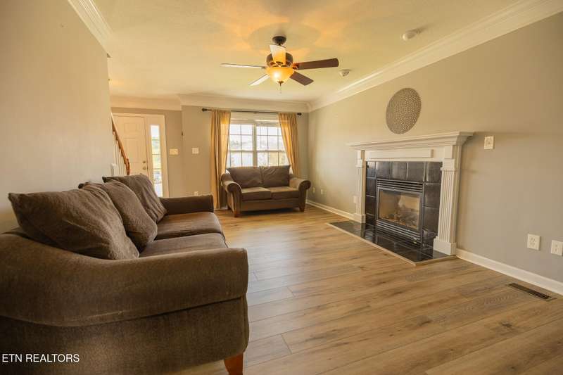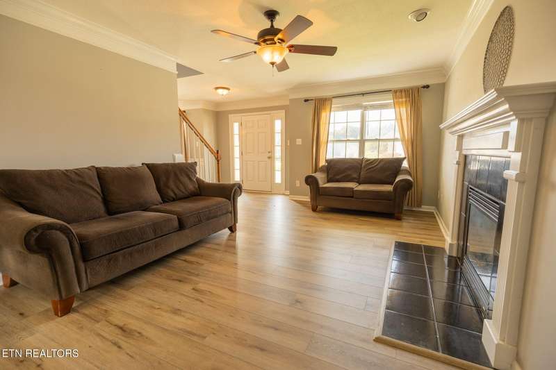 Welcome to 3300 Lighted Path Lane in Knoxville's thriving Karns community! This impeccably maintained 3-bedroom, 2.5-bath home sits on a quiet cul-de-sac and offers a thoughtful floorplan designed for both comfort and function. With fresh paint, brand new Luxury Vinyl Plank flooring on the main level, and all-new carpet upstairs, it's truly move-in ready! Inside, you'll find a cozy living room with a gas log fireplace framed by a marble tile hearth and decorative wood mantle, a formal dining room with wainscoting and double crown moldings, and an eat-in kitchen that checks every box. The kitchen features upgraded crown cabinets, a large island with bar seating and built-in storage for small appliances, a spacious pantry, and premium appliances, including a Smart Things multi-function smooth-top range, stainless steel French door refrigerator, and a recently upgraded dishwasher. A dedicated 9x9 breakfast area makes mornings easy, while a convenient laundry room and guest half bath complete the main level. Upstairs, the oversized primary suite offers a relaxing retreat with a deep jetted garden tub, walk-in shower, double vanity, and generous walk-in closet. Two additional bedrooms with large closets (one of them a walk-in closet), a full bath with tub/shower combo, and a massive bonus room over the garage with its own spacious closet provides plenty of flexible living space, perfect for a playroom, home theater, man-cave, or even a 4th bedroom. Additional upgrades include a newer roof (just 3 years old), dual HVAC units for zoned climate control, and professional landscaping. Seller is also offering a 1-year Prime Home Warranty through ACHOSA Home Warranty (informational brochure attached in documents) for added peace of mind. Outside, enjoy a covered front porch ideal for rocking chairs and iced tea, or unwind on the back deck overlooking the backyard. The driveway features a lamp post for added charm and security. As part of this welcoming neighborhood, you'll have access to a private lake with ducks, geese, a fishing platform, and a walking path around the perimeter. Imagine peaceful evening strolls by the water, or movie nights in your spacious bonus room...the lifestyle here is hard to beat! Conveniently located near schools, grocery stores, shopping, and with easy access to main roads, this home offers the perfect blend of comfort, modern conveniences, and community living. Don't miss your chance to make this beautiful house your new home!