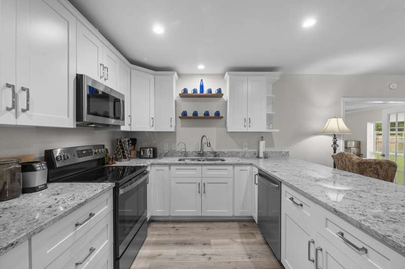 This is not your average remodel! Purchased in 2024 and meticulously transformed with over $200k in thoughtful upgrades, this home delivers the peace of mind of new construction with the warmth and character you've been craving. A brand-new roof, updated electrical (stove/dryer) and plumbing systems, all-new kitchen and baths, custom finishes, and luxury flooring throughout; every inch of this home was touched with care and intention. You'll love the designer kitchen, complete with granite countertops, soft-close cabinetry, and a full suite of new stainless steel appliances. The bathrooms offer custom tile surrounds, modern vanities, and elevated fixtures. Beyond the finishes, the work behind the walls is just as impressive; updated electrical panel, meter, whole-house water filtration system, motion sensor exterior lighting, and a freshly epoxied garage floor, just to name a few. Truly turnkey, this home blends high-end style with quality craftsmanship; and the result is exceptional.