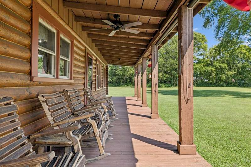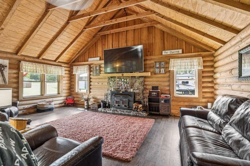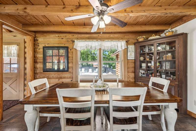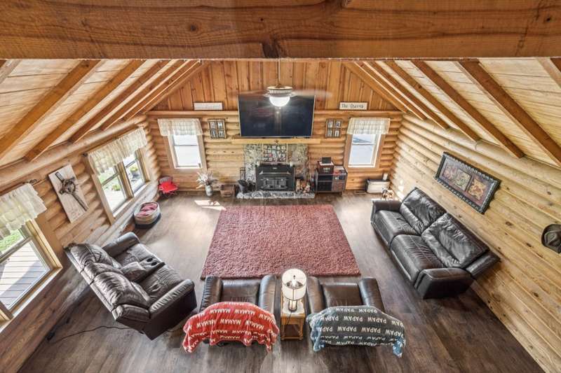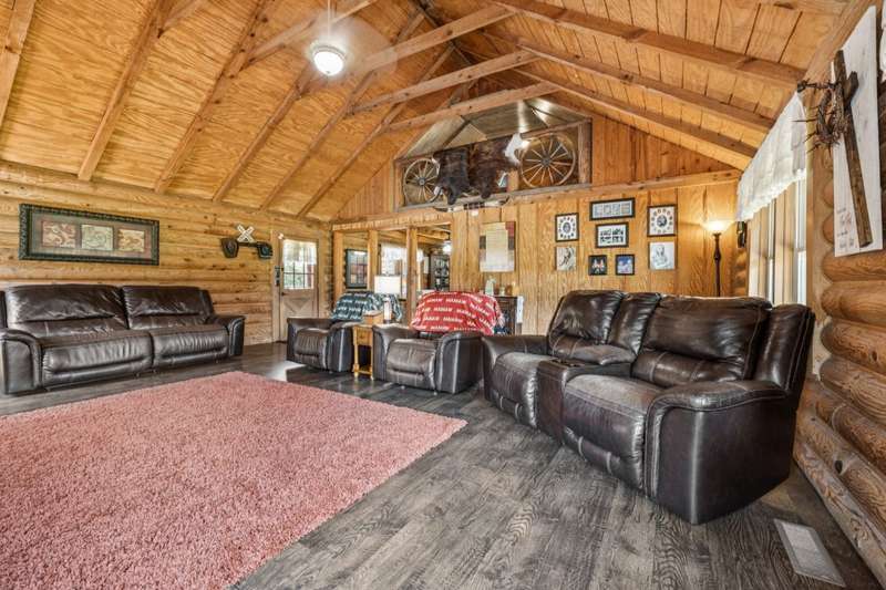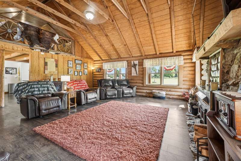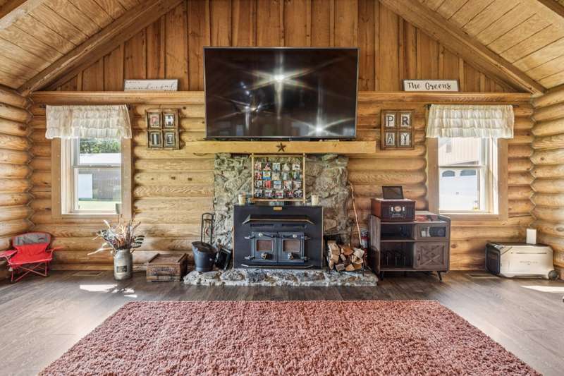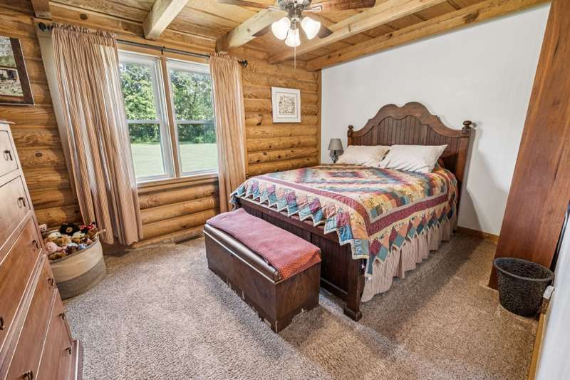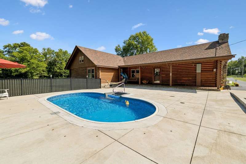 Gorgeous setting with 3 bed, 2.5 bath log home nestled on 5 acres. This is a very well maintained log home with tons of perks! Enjoy a full length porch across the front, 32x38 detached garage plus a drool worthy 40x60 workshop with 14' walls, 200 amp service, polyasparatic coated floor, 400 sqft area has 6 thick concrete, there are (2) 10x10 doors, a 10x12 door, and a wood stove. Like new in-ground salt-water pool, updated kitchen and primary bathroom, updated flooring, well maintained paved drive, inground storm shelter, newer roof, RV electric hook up and a second perk site. Motivated seller is offering up to $10,000 towards buyers closing costs with acceptable offer. Owner has kept meticulous maintenance records and all you have to do is move in to start enjoying privacy that is also super convenient to the city. All equipment and systems in the home have been improved or replaced. See the home improvement list in photos. Loft (rec room) and office with half bathroom on second floor. Gas cooktop in kitchen and tankless gas hot water heater.