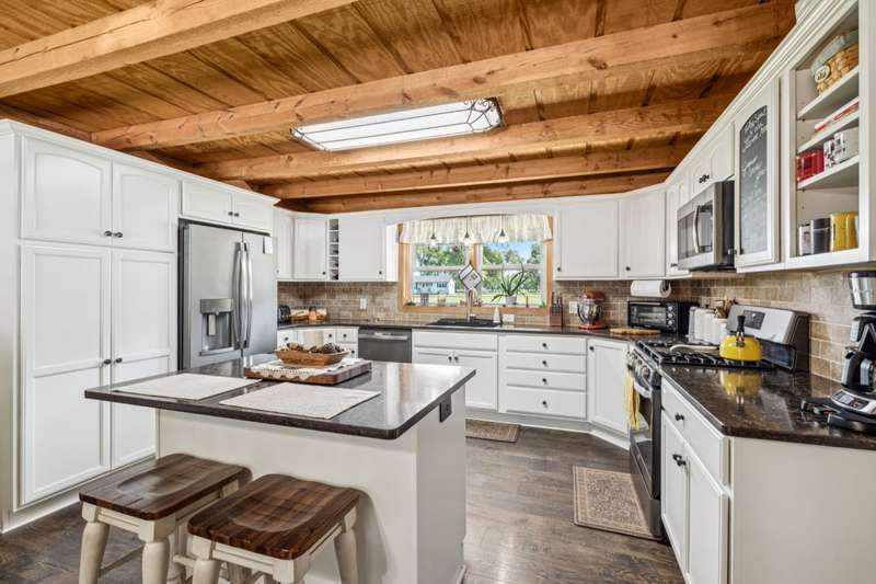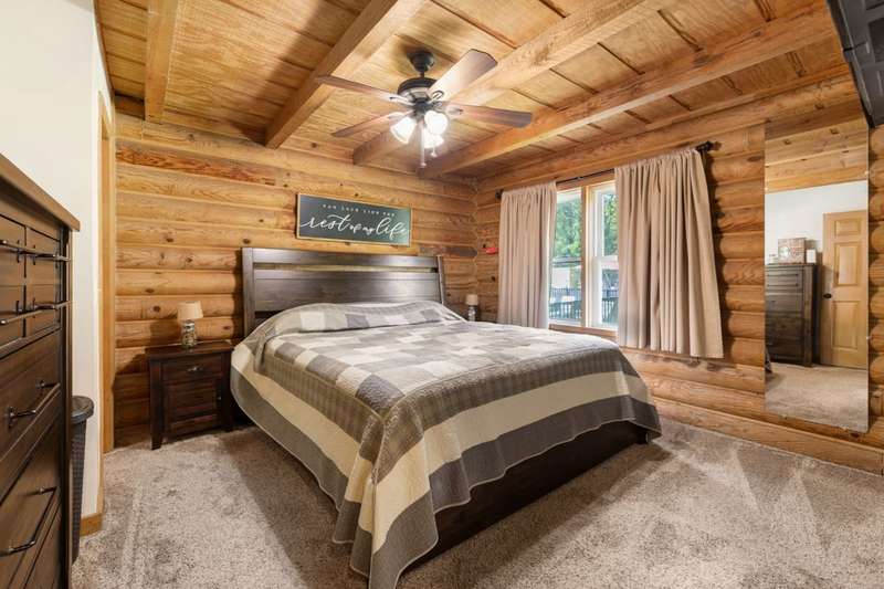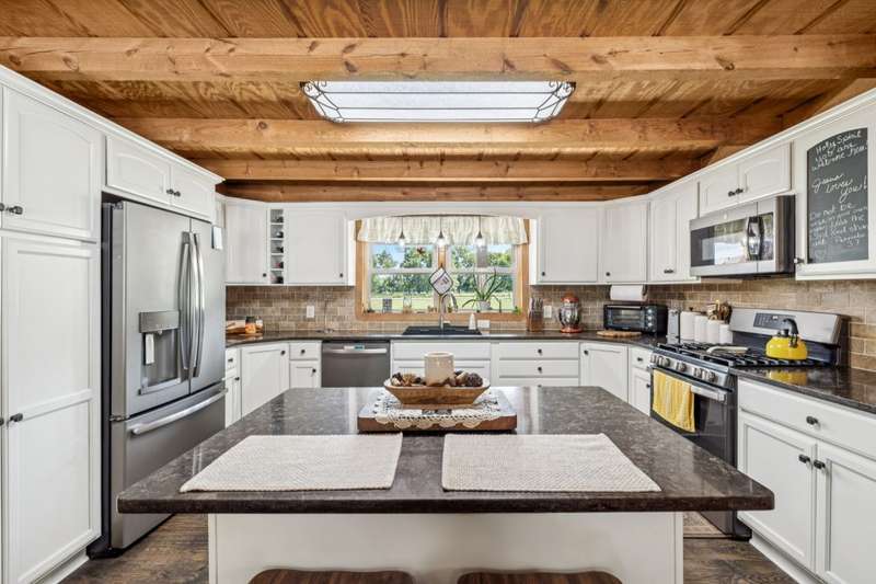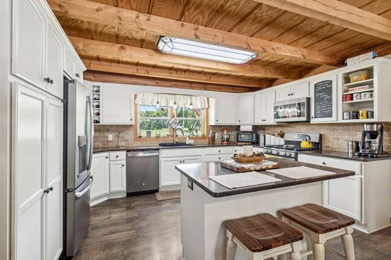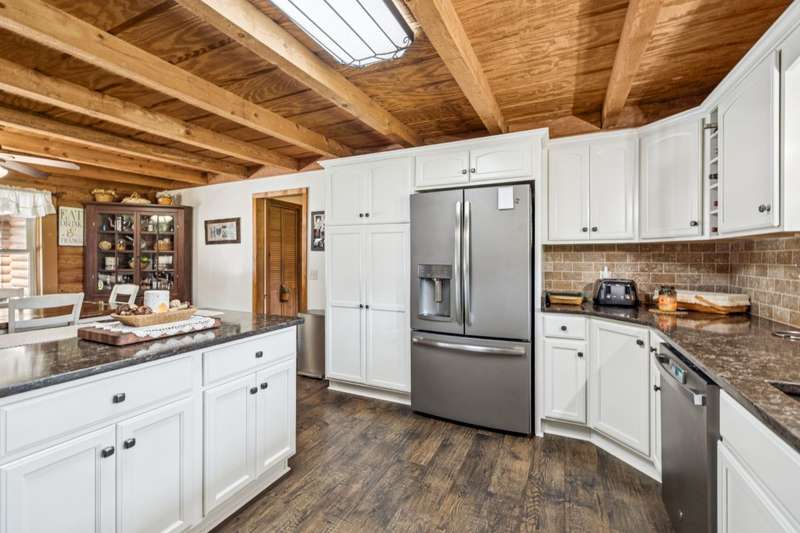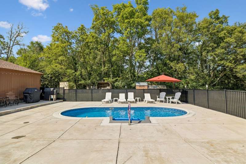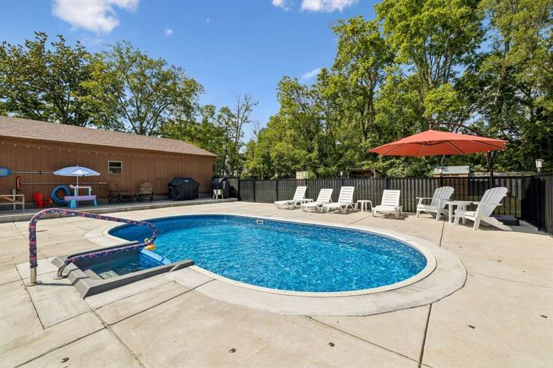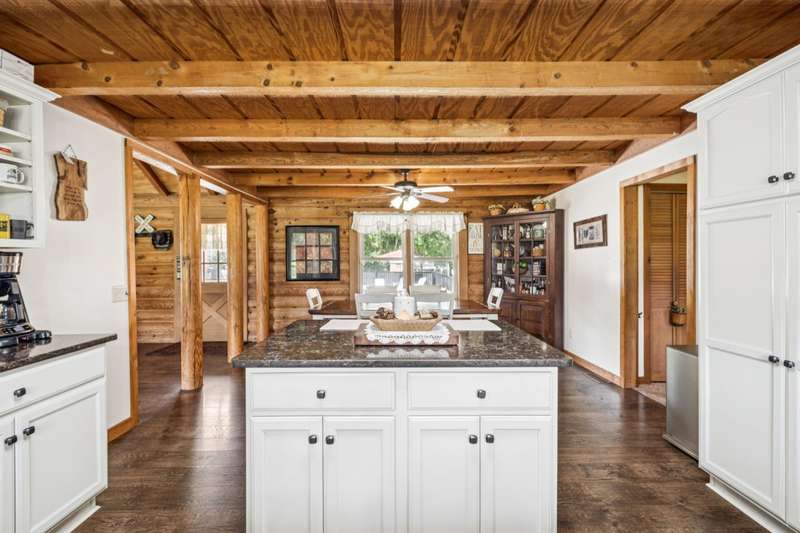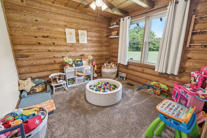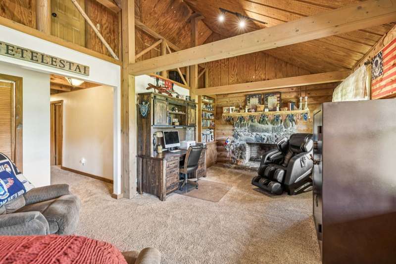 Gorgeous setting with 3 bed, 2.5 bath log home nestled on 5 acres. This is a very well maintained log home with tons of perks! Enjoy a full length porch across the front, 32x38 detached garage plus a drool worthy 40x60 workshop with 14' walls, 200 amp service, polyasparatic coated floor, 400 sqft area has 6 thick concrete, there are (2) 10x10 doors, a 10x12 door, and a wood stove. Like new in-ground salt-water pool, updated kitchen and primary bathroom, updated flooring, well maintained paved drive, inground storm shelter, newer roof, RV electric hook up and a second perk site. Motivated seller is offering up to $10,000 towards buyers closing costs with acceptable offer. Owner has kept meticulous maintenance records and all you have to do is move in to start enjoying privacy that is also super convenient to the city. All equipment and systems in the home have been improved or replaced. See the home improvement list in photos. Loft (rec room) and office with half bathroom on second floor. Gas cooktop in kitchen and tankless gas hot water heater.