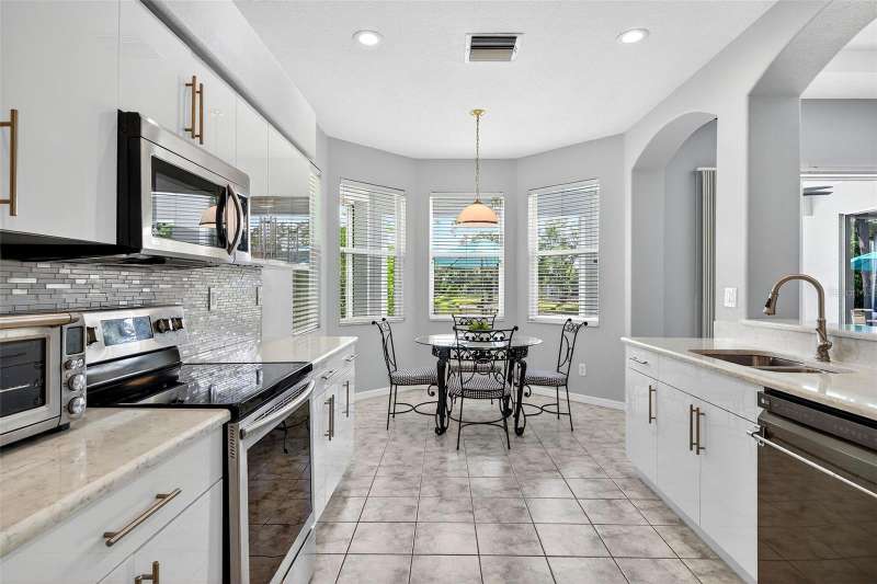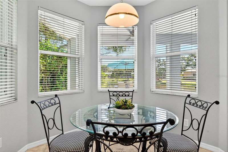 Under contract-accepting backup offers. Enjoy easy Florida living and peaceful sunrises surrounded by nature and serene pond views. Located in the desirable Carlyle at Village of Palm-Aire, this 4-bedroom, 2-bath home offers 2,142 square feet of comfortable living space. The versatile fourth bedroom sits at the front of the home with double doors and a closet, making it ideal as a home office, den, or guest suite to fit your lifestyle. Inside, you'll find high tray ceilings in both the living room and primary suite, complemented by ceramic tile and luxury vinyl flooring. The renovated eat-in kitchen features granite countertops, stainless steel appliances, and a walk-in pantry, opening seamlessly to the living area and formal dining room, perfect for entertaining. This property embodies low-maintenance Florida living, complete with accordion hurricane shutters, an outdoor shower, and recent upgrades including a new A/C (2020), roof (2022), and polyaspartic patio (2024), ready to be screened in if desired. Community amenities include a pool with lounge chairs, tables, and a grill, along with a tennis/pickleball court with basketball hoop, and a playground. With low HOA fees, no CDD, and a prime location near Sarasota-Bradenton International Airport, University Town Center, Palm-Aire Country Club, Conservatory Park, Whole Foods, Publix, and Detweiler's, this home truly combines convenience, comfort, and the best of Sarasota. Optional Palm-Aire Country Club membership offers two 18-hole championship golf courses, a clubhouse, swimming pool, eight lighted Har-Tru tennis courts, and a fitness center.