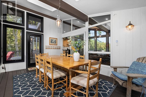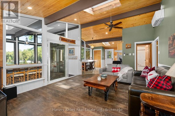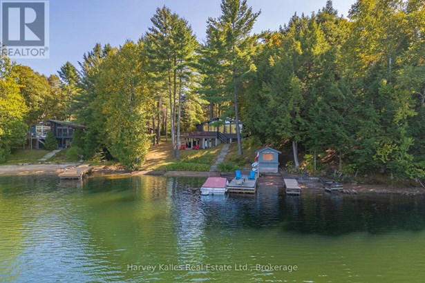 Ready to begin or enhance your cottage adventures? A perfect turn-key waterfront retreat on Kawagama Lake is now available. Boasting 128' of pristine frontage, the sandy, family-friendly entry makes swimming and water fun effortless, while the dock and waterfront storage shed add convenience and charm to lakeside living. Step inside to discover more than 1000sqft on the main floor with three inviting bedrooms and a full bathroom complemented by a sun-drenched Muskoka room that perfectly captures lake views and natural light. Cozy up by the propane fireplace in the living room or host unforgettable gatherings on the lakeside deck overlooking the sparkling waters. The 725sqft walkout basement, features a separate entrance and a newly completed 3-piece bathroom, offering a versatile space for guests, hobbyists, or potential for additional living areas. Car enthusiasts and boat lovers will appreciate the 3-bay garage and ample parking, while a garden and multiple fire pit areas add an extra special touch to this lakeside haven. With a drilled well, year-round accessibility, and every detail to create the quintessential Muskoka experience, this property is more than a cottage. Lakeside memories await! (id:16999)