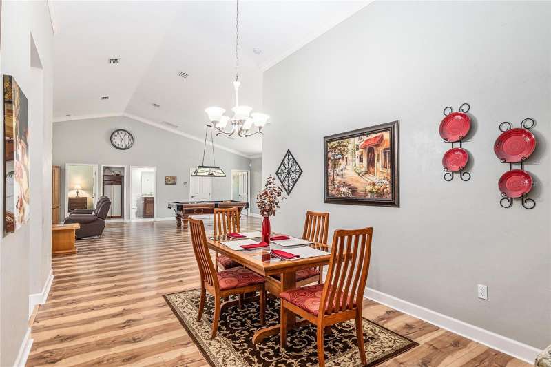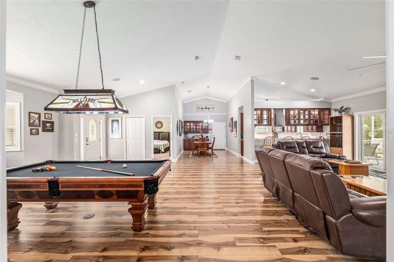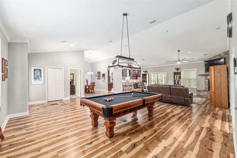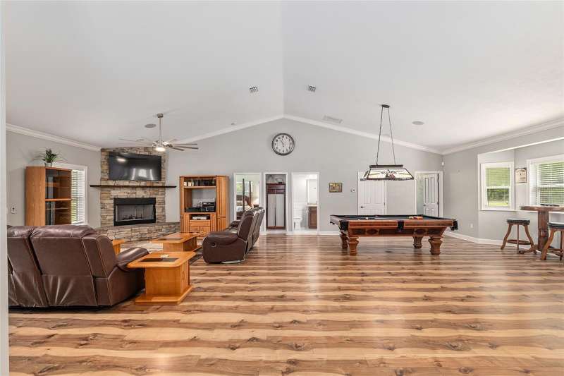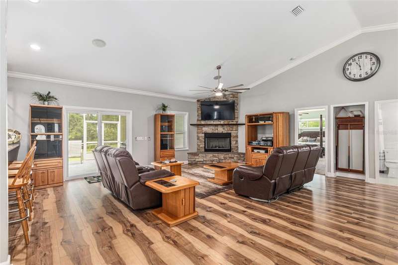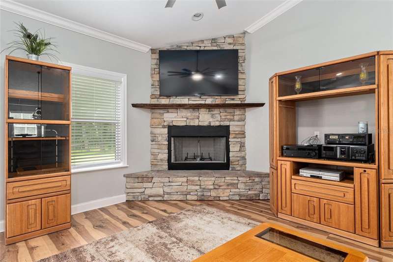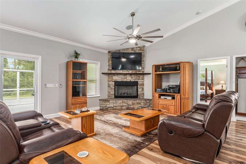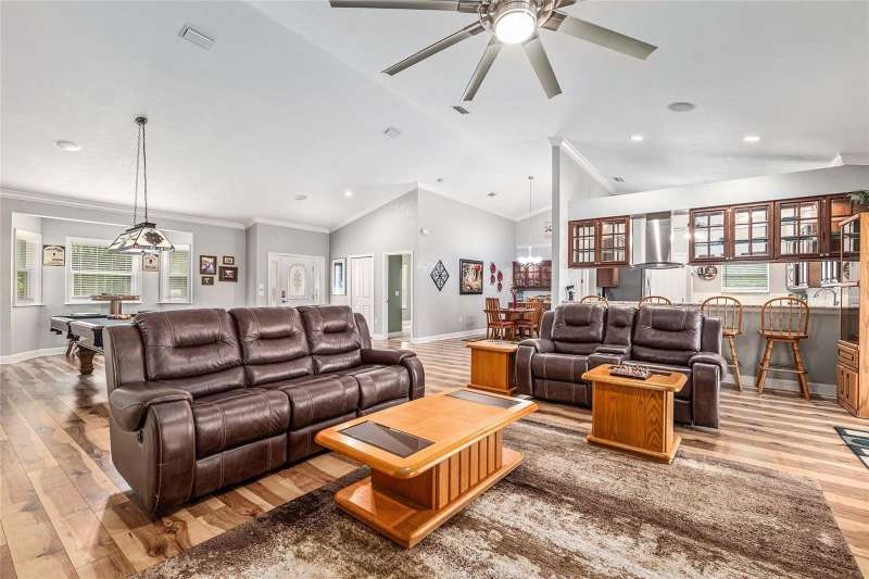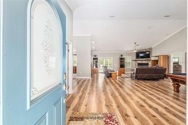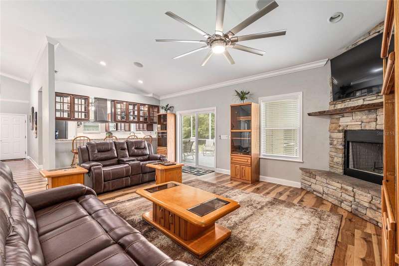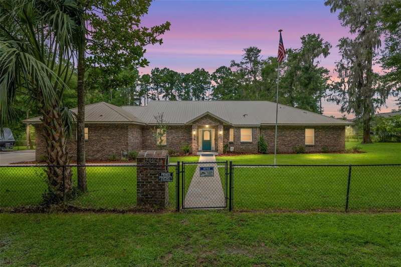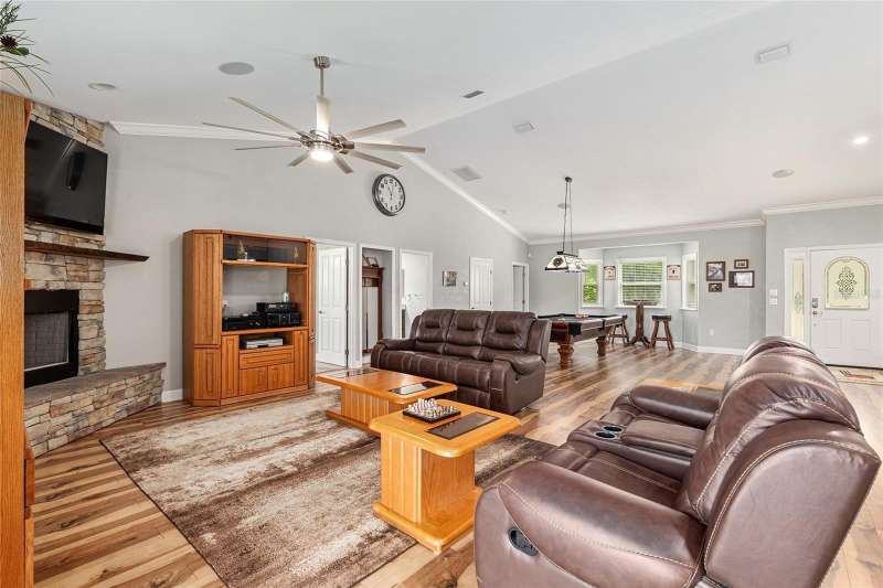 Under contract-accepting backup offers. Custom 2017 Brick Home on 1 Acre In-Town – Loaded with Upgrades! Welcome to this beautifully maintained 3-bedroom, 2-bath custom brick home located on a full acre in a prime in-town location with NO HOA! This nearly 2,300 square foot home offers an open layout with vaulted ceilings, crown molding, built-in speakers, and two cozy gas fireplaces—one in the living room and another in the spacious primary suite. The well-appointed kitchen features granite countertops, subway tile backsplash, stainless steel appliances, under-cabinet lights, sleek range hood, walk-in pantry and custom soft-close cabinetry. A separate formal dining room that includes a built-in glass cabinet with interior lighting and breakfast bar offer plenty of dining options. Vinyl plank flooring in main living areas, tile in kitchen and bathrooms and carpet in bedrooms. A dedicated inside laundry room offers extra convenience. Oversized primary bedroom with plenty of room for large furniture, a gas fireplace and handicap accessible bathroom with walk-in shower and a double sink vanity with granite. Enjoy low utility bills thanks to energy-efficient Isonene insulation, well and septic, and a durable metal roof. The 3-car garage provides ample storage, and there’s even a 20x30 RV pad with septic cleanout, security light, and gated access. Outside you will find a flagpole, brick mailbox, security lights and a security system. The home is whole-home generator-ready and has natural gas running to the home. Unwind on the expansive screened-in back porch, fully wired for a hot tub and TV—perfect for watching west-facing sunsets. Additional features include a fully fenced yard, irrigation system, and top-rated school zones. Conveniently located near I-75, shopping, dining, and hospitals. Pool table negotiable with sale. Don’t miss this rare combination of space, upgrades, and location!