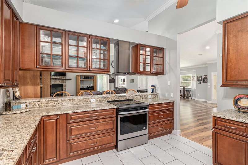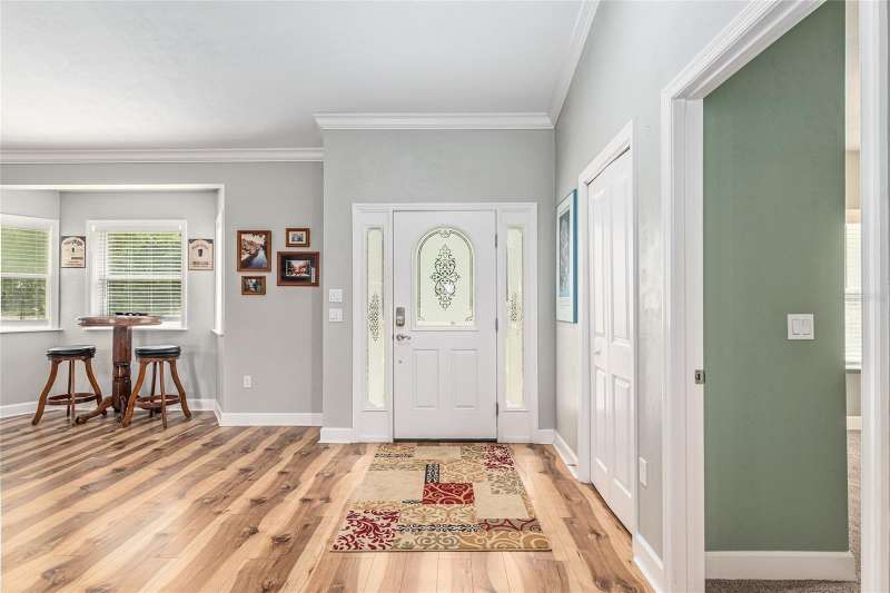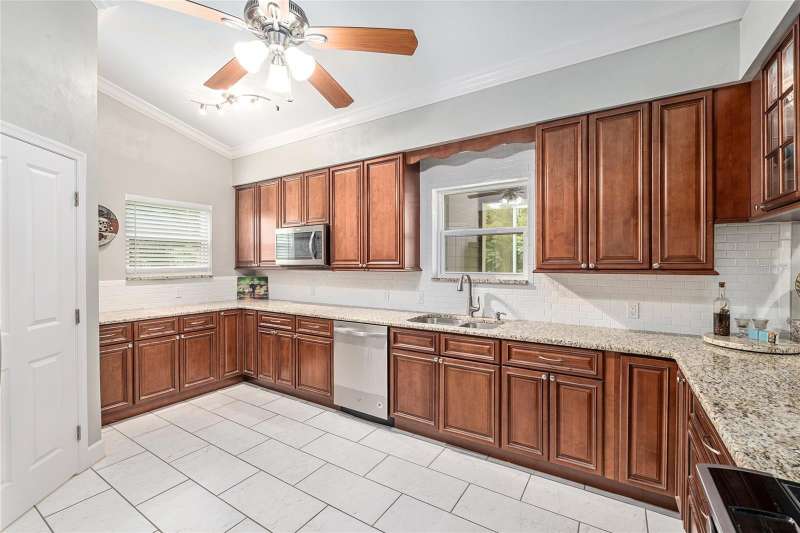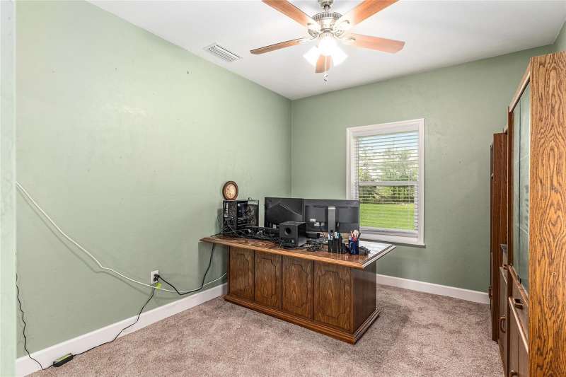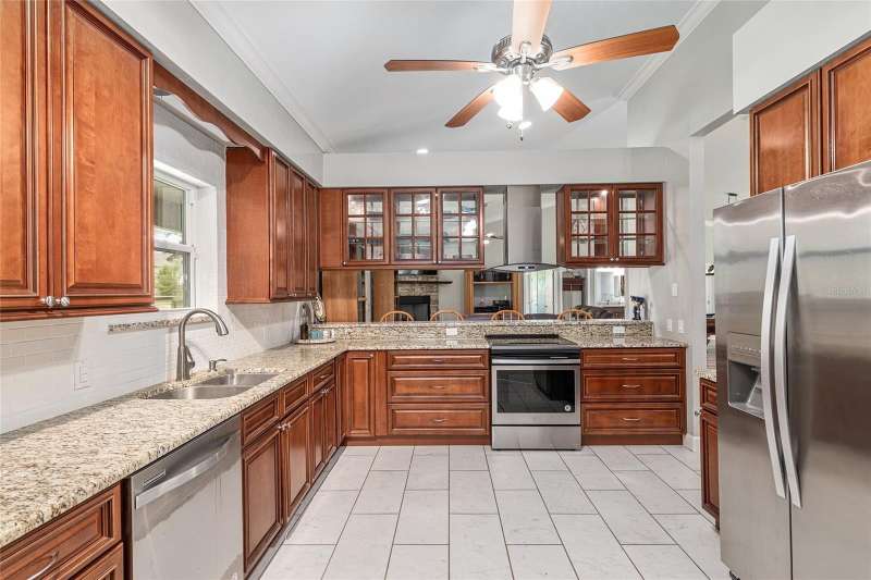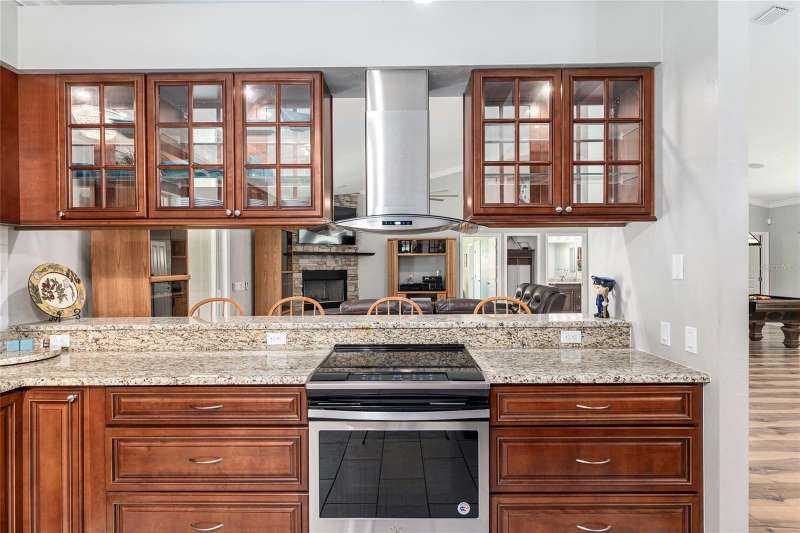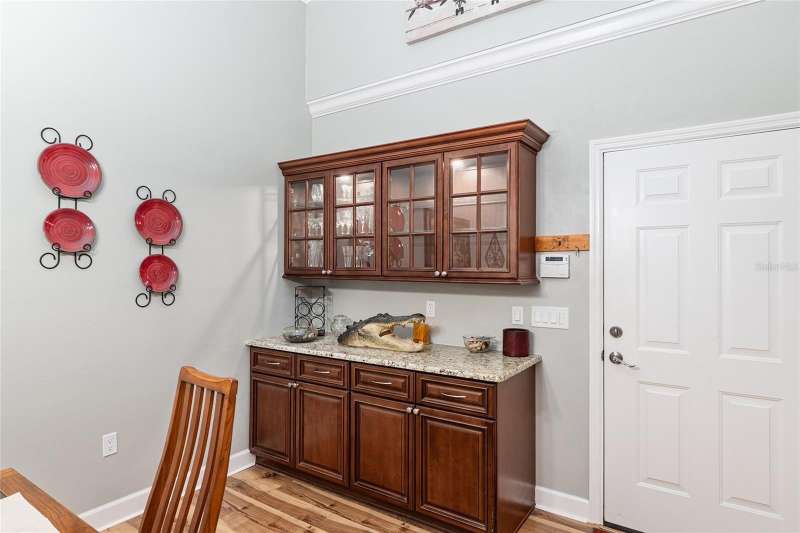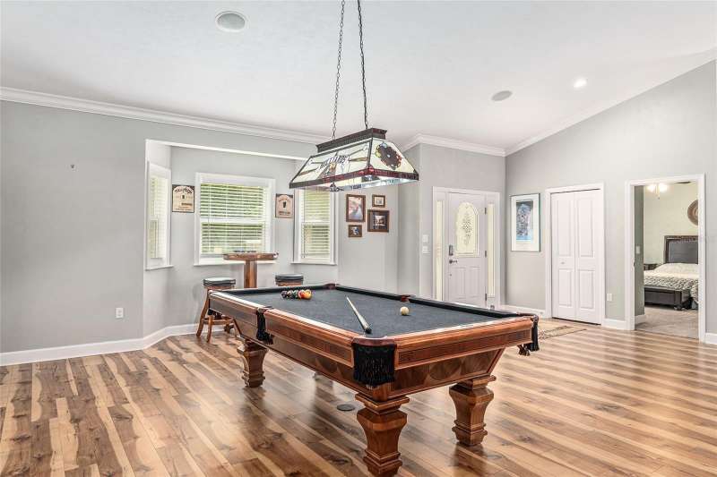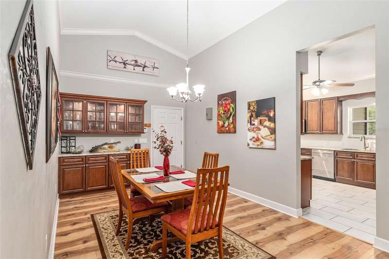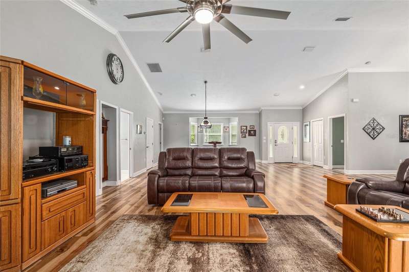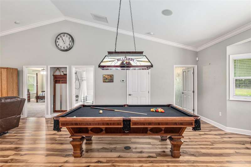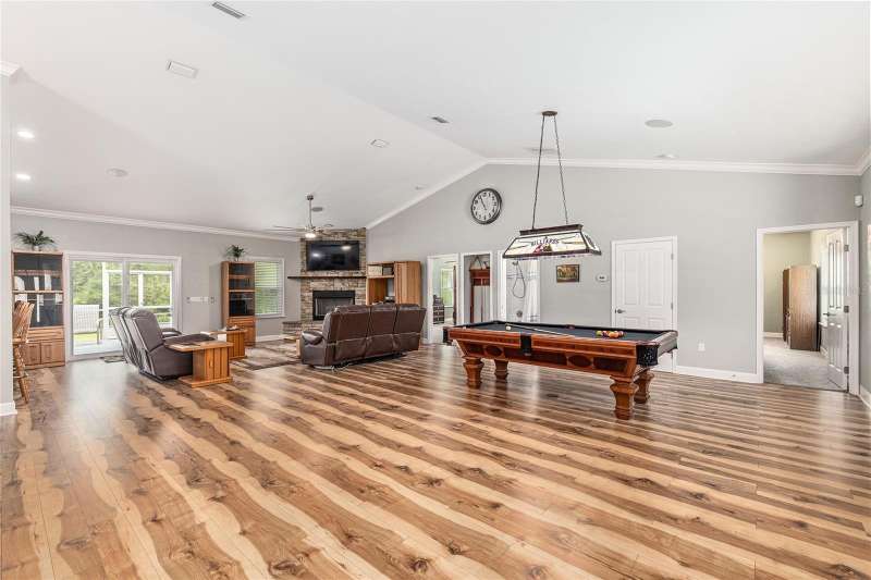 Under contract-accepting backup offers. Custom 2017 Brick Home on 1 Acre In-Town – Loaded with Upgrades! Welcome to this beautifully maintained 3-bedroom, 2-bath custom brick home located on a full acre in a prime in-town location with NO HOA! This nearly 2,300 square foot home offers an open layout with vaulted ceilings, crown molding, built-in speakers, and two cozy gas fireplaces—one in the living room and another in the spacious primary suite. The well-appointed kitchen features granite countertops, subway tile backsplash, stainless steel appliances, under-cabinet lights, sleek range hood, walk-in pantry and custom soft-close cabinetry. A separate formal dining room that includes a built-in glass cabinet with interior lighting and breakfast bar offer plenty of dining options. Vinyl plank flooring in main living areas, tile in kitchen and bathrooms and carpet in bedrooms. A dedicated inside laundry room offers extra convenience. Oversized primary bedroom with plenty of room for large furniture, a gas fireplace and handicap accessible bathroom with walk-in shower and a double sink vanity with granite. Enjoy low utility bills thanks to energy-efficient Isonene insulation, well and septic, and a durable metal roof. The 3-car garage provides ample storage, and there’s even a 20x30 RV pad with septic cleanout, security light, and gated access. Outside you will find a flagpole, brick mailbox, security lights and a security system. The home is whole-home generator-ready and has natural gas running to the home. Unwind on the expansive screened-in back porch, fully wired for a hot tub and TV—perfect for watching west-facing sunsets. Additional features include a fully fenced yard, irrigation system, and top-rated school zones. Conveniently located near I-75, shopping, dining, and hospitals. Pool table negotiable with sale. Don’t miss this rare combination of space, upgrades, and location!