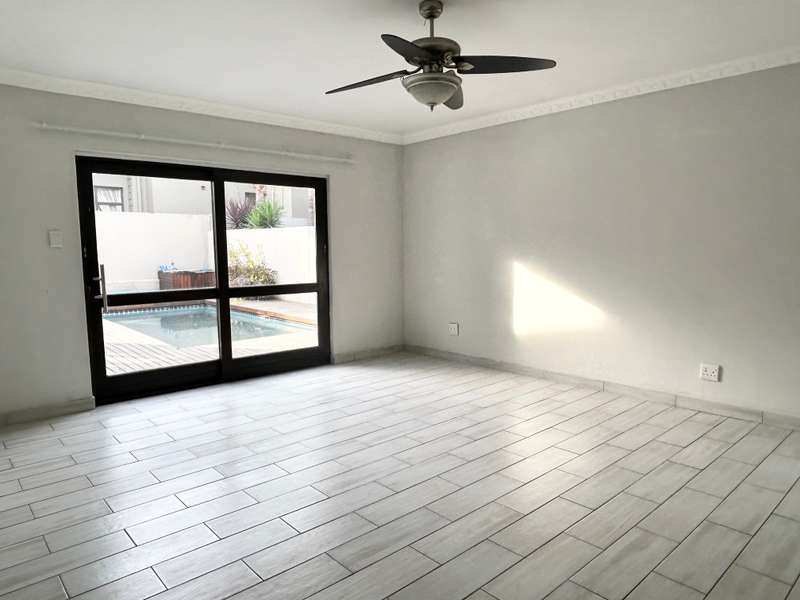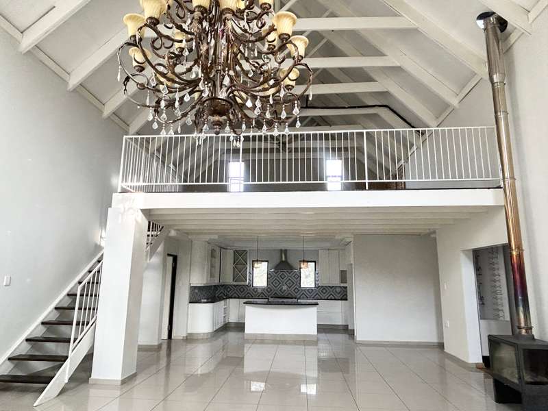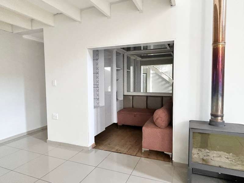 Effortless Elegance Meets Open-Plan Living This beautifully designed home offers open-plan living at its finest—featuring soaring ceilings, abundant natural light, and refined finishes throughout. Perfectly positioned in a secure estate, all primary living areas are thoughtfully laid out on one level for convenient and comfortable living. A welcoming entrance leads into a spacious open-plan lounge warmed by a wood-burning fireplace, flowing seamlessly into a generous dining area and a contemporary kitchen complete with a chef’s island and gas hob—ideal for entertaining. An intimate bar area with seating adds to the home’s inviting charm. Soft lighting, the warmth of the fire, and a wonderful sense of openness define the ambiance of this home. Upstairs, a versatile open-plan loft area with a built-in bar offers panoramic views—perfect as a second lounge, entertainment space, or home office. The home boasts three well-sized bedrooms. Two bedrooms with built-in cupboards share a stylish full bathroom, while the luxurious main suite features a private en-suite, walk-in dressing room, and direct access to a sun-soaked deck and sparkling pool. Additional Features: • Double automated garage • Combustion fireplace • Sparkling pool with deck area • Staff toilet • Storeroom • Low-maintenance garden • Situated in a secure, well-maintained estate This home offers a harmonious blend of style, comfort, and functionality—ready for you to move in and enjoy.