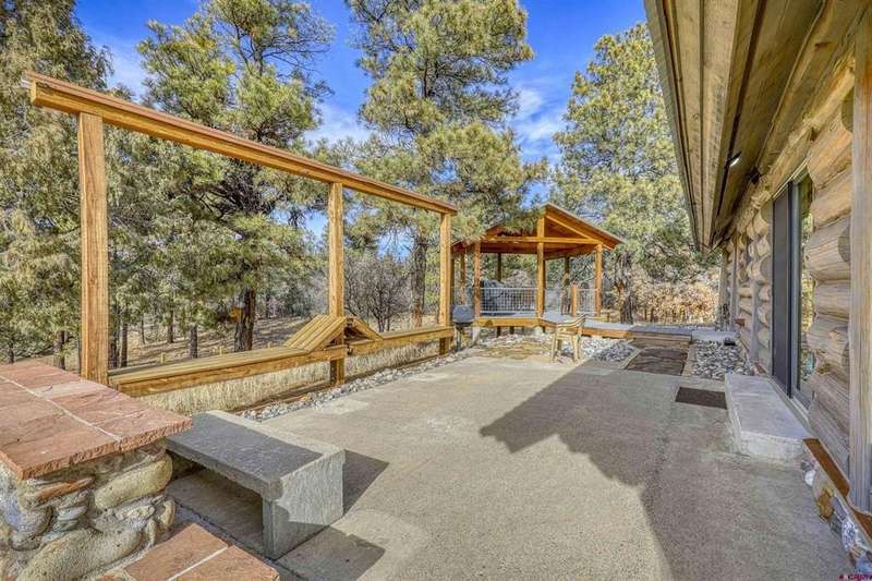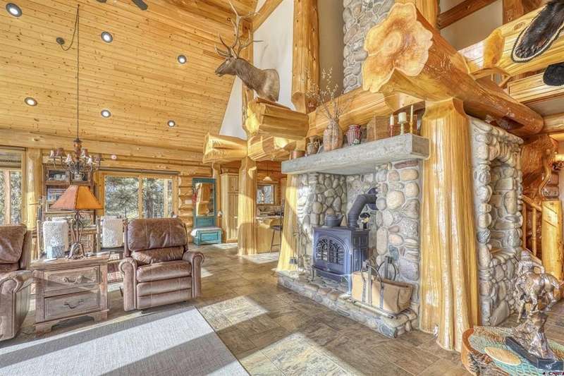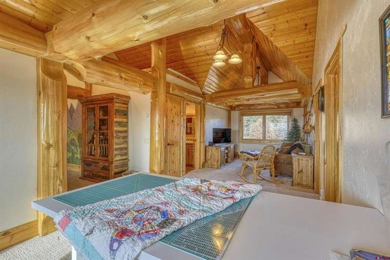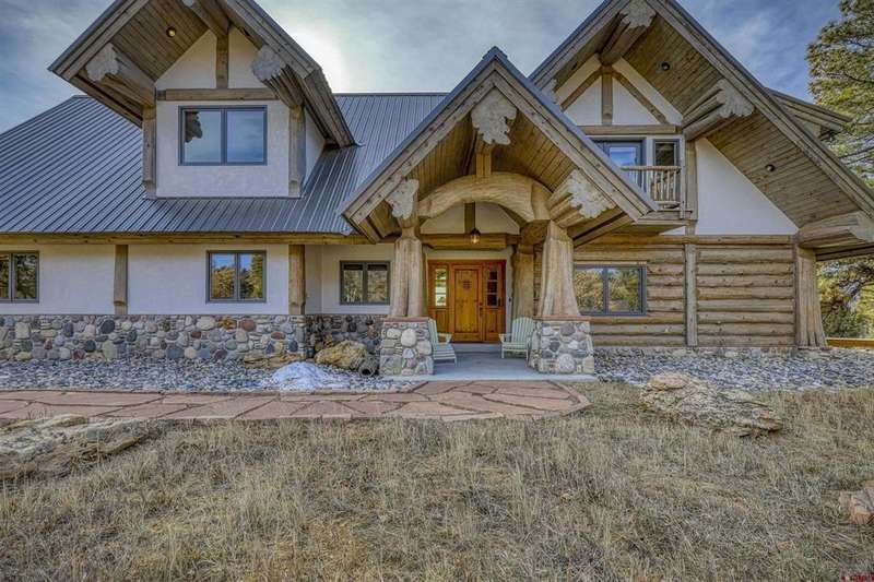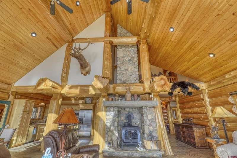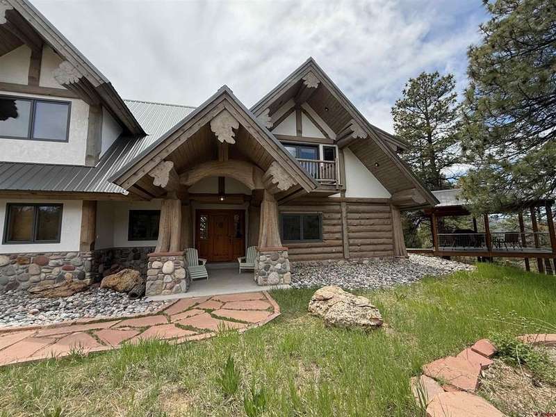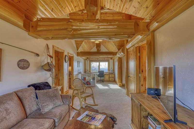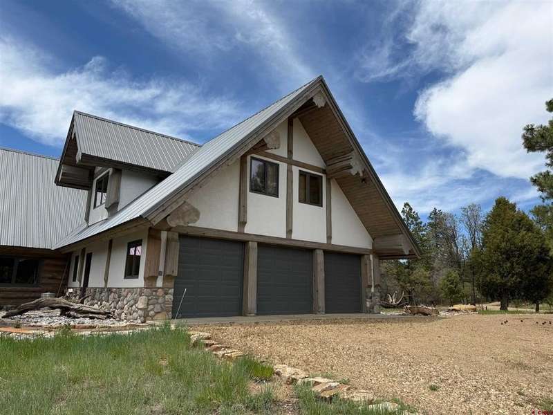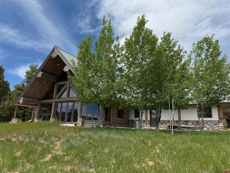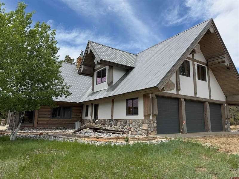 Juli Morelock, Galles Properties, C: 970-946-2137, juli@gallesproperties.com, https://julimorelock.com: Presenting 219 S. Cougar Court! Phenomenal Value!! Exquisite Colorado Mountain Log Home on 35 Acres. Discover unparalleled craftsmanship in this magnificent 3,010 sq ft log home, nestled on 35 private acres of Aspen, Oak, and Pine forests. Built by renowned West Coast Log Homes of British Columbia, this 3-bedroom, 2.5 bath retreat combines rustic elegance with meticulous attention to detail. The handpicked Cedar full round logs and a hand-carved Mountain Lion at the entrance set the tone for the extraordinary design. The grand great room boasts floor-to-ceiling windows, offering breathtaking panoramic views and river rock surrounding the glass front wood stove creates ambience in the winter. The chef’s kitchen features slate floors, granite countertops, and an indoor grill (never used), delivering a true Colorado culinary experience. The expansive master suite includes a spa-like bath with a large tub looking out to nature, and a separate walk-in tiled shower. Additional highlights include a home office, family room with gorgeous exposed logs, and two inviting guest bedrooms. Outdoor living is enhanced by a covered patio with built-in loungers, while a 3-car attached garage with a dog bath adds convenience for pet lovers. A 1,200 sq ft detached garage/workshop with power and water provides space for hobbies, including a bay large enough for a 40’ RV. An attached dog kennel completes this versatile space. Equipped with an 8-zone in-floor heating system and adorned with pine ceilings, this home is as functional as it is beautiful. If you’re seeking a serene mountain retreat this meticulously maintained home invites you to experience Colorado living at its finest. The owner has recently installed a new roof, in addition, all logs have recently been hand sanded, stained and chinked. This is a must see home to fully appreciate the detailed craftsmanship. Alpine Lakes Ranch is located just South of downtown Pagosa Springs. The overall ranch is 8600 acres and is broken into 35+ acre parcels. Virtually the entire ranch is surrounded by National Forest and/or BLM land. There are numerous, private Nat. Forest access points throughout the ranch for exceptional trail riding, hiking, hunting and exploring.