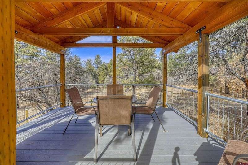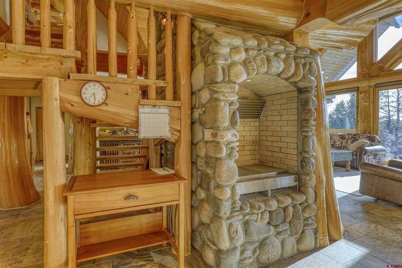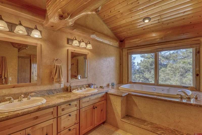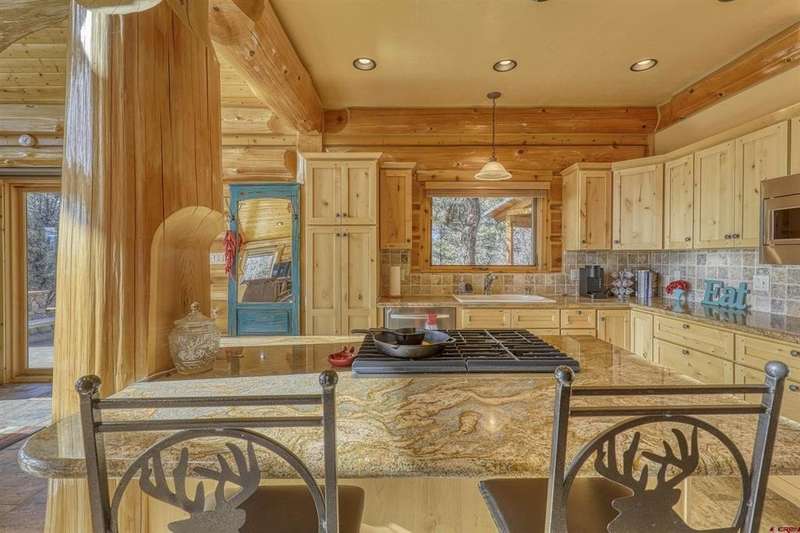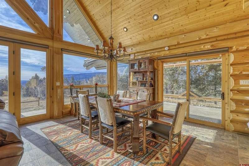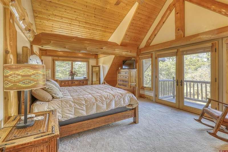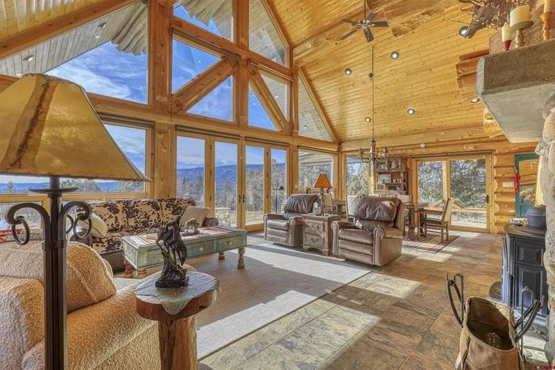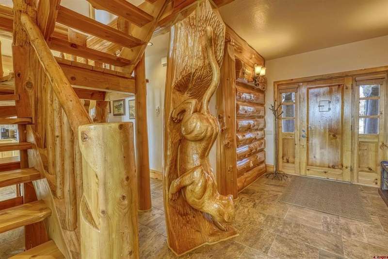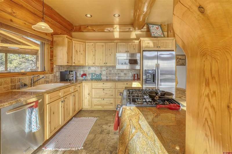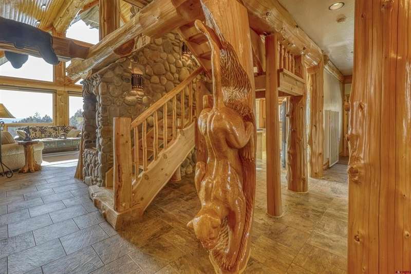 Juli Morelock, Galles Properties, C: 970-946-2137, juli@gallesproperties.com, https://julimorelock.com: Presenting 219 S. Cougar Court! Phenomenal Value!! Exquisite Colorado Mountain Log Home on 35 Acres. Discover unparalleled craftsmanship in this magnificent 3,010 sq ft log home, nestled on 35 private acres of Aspen, Oak, and Pine forests. Built by renowned West Coast Log Homes of British Columbia, this 3-bedroom, 2.5 bath retreat combines rustic elegance with meticulous attention to detail. The handpicked Cedar full round logs and a hand-carved Mountain Lion at the entrance set the tone for the extraordinary design. The grand great room boasts floor-to-ceiling windows, offering breathtaking panoramic views and river rock surrounding the glass front wood stove creates ambience in the winter. The chef’s kitchen features slate floors, granite countertops, and an indoor grill (never used), delivering a true Colorado culinary experience. The expansive master suite includes a spa-like bath with a large tub looking out to nature, and a separate walk-in tiled shower. Additional highlights include a home office, family room with gorgeous exposed logs, and two inviting guest bedrooms. Outdoor living is enhanced by a covered patio with built-in loungers, while a 3-car attached garage with a dog bath adds convenience for pet lovers. A 1,200 sq ft detached garage/workshop with power and water provides space for hobbies, including a bay large enough for a 40’ RV. An attached dog kennel completes this versatile space. Equipped with an 8-zone in-floor heating system and adorned with pine ceilings, this home is as functional as it is beautiful. If you’re seeking a serene mountain retreat this meticulously maintained home invites you to experience Colorado living at its finest. The owner has recently installed a new roof, in addition, all logs have recently been hand sanded, stained and chinked. This is a must see home to fully appreciate the detailed craftsmanship. Alpine Lakes Ranch is located just South of downtown Pagosa Springs. The overall ranch is 8600 acres and is broken into 35+ acre parcels. Virtually the entire ranch is surrounded by National Forest and/or BLM land. There are numerous, private Nat. Forest access points throughout the ranch for exceptional trail riding, hiking, hunting and exploring.