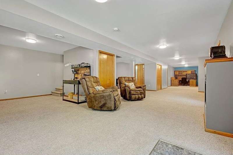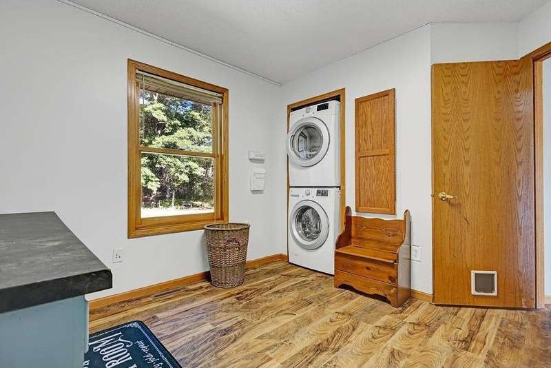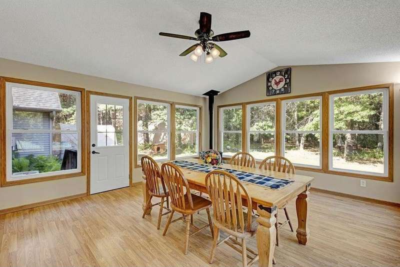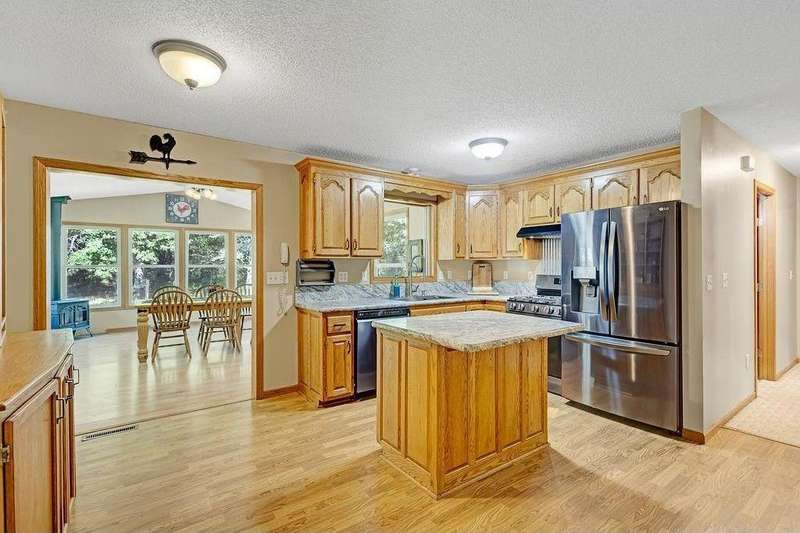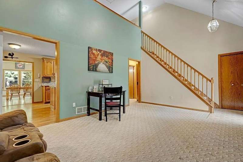 Welcome to 417 Whiskey Rd SW—a spacious and versatile 5-bedroom, 4-bathroom home nestled on 1.2 acres of peaceful, wooded land. This property is more than just a house; it’s a sanctuary for those seeking space, nature, and flexibility. From the moment you step inside, you’ll feel the warmth and openness of the soaring vaulted ceilings and the inviting lofted living area. The main level offers four bedrooms and two full baths, making it ideal for families, multigenerational living, or anyone who values convenience and comfort. The private primary suite is a true retreat, complete with a generous walk-in closet. The heart of the home—the kitchen—is designed for connection and creativity, featuring newer stainless steel appliances and a large center island perfect for gatherings. A cozy gas stove in the dining room adds charm and warmth, especially during Minnesota’s winter months. Downstairs, the walkout basement opens up endless possibilities: a home gym, game room, theater, or even a separate living space. Step outside to explore wooded trails, a creek, and views of protected state land leading to the Rum River—a haven for wildlife lovers and outdoor enthusiasts. The oversized 4-car garage, heated with a pellet stove and equipped with dual garage doors, is a dream for hobbyists, tinkerers, or anyone needing extra space. Whether you're looking for a peaceful escape, a flexible layout for a growing household, or a property that supports foster care or group living, this home delivers. With a motivated seller and a rare combination of space, privacy, and location, this is your chance to own a truly special piece of Isanti.