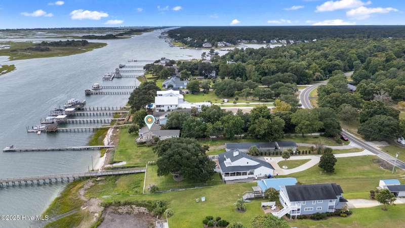 Rare opportunity to own over 3/4 acre on the Intracoastal Waterway with panoramic views across Lea Hutaff Island and out Rich Inlet to the ocean. A tree canopy, including multiple live oaks, frames the charm of the property with a rustic drive leading to an almost 100-year-old cottage on the ICWW. Built in 1930 and updated for year-round living, the home offers 3 bedrooms, 2 baths, a light-filled sunroom or ''sleeping porch,'' laundry room, and an open kitchen with gas stove and granite countertops. Inviting spaces include a screened porch, covered front porch, and over 2,000 sq ft of coastal living. A private pier extends to deep water, offering direct boat access to Rich Inlet and the ocean beyond. Home and pier are sold as-is, but the high bluff and remarkable setting provide the ideal canvas for a modern homesite or a timeless retreat.
