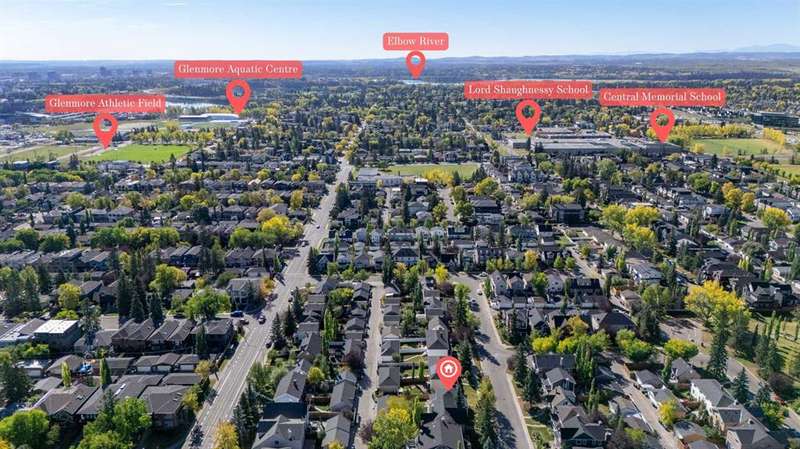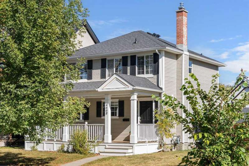 Nestled on a lovely and peaceful tree-lined street in one of Calgary’s most desirable inner-city neighbourhoods! From the moment you arrive, the curb appeal shines with a charming front balcony - the perfect spot to enjoy a morning coffee or to chat with the super friendly neighbours. Inside, a spacious front entry leads into a bright and welcoming main floor where the open-concept living room with cozy fireplace flows seamlessly into the dining space and kitchen. Also on the main floor is a convenient half bathroom, and back mudroom with a separating door to keep daily life practical and tidy. Upstairs, there are three bedrooms - the bright primary retreat offers his and her closets with built-in organizers, and a private 4-piece ensuite, while a renovated 3-piece bathroom serves the additional bedrooms. The fully finished lower level expands the living space with a generous recreation room, a fourth bedroom (non-egress window), a full 3-piece bathroom, and a laundry area with excellent storage. Outdoor living is just as enjoyable - a large back deck overlooks the spacious, fully fenced, flat yard—perfect for children, pets, or simply enjoying the extra privacy that comes with a larger lot. At the rear of the property, the triple garage is a rare find. The double side is currently home to a 15.5’ x 15.5’ fully finished, heated storage/flex room that has been double-drywalled for sound control, while still allowing for secure parking on the single side. With the removal of a couple of walls, it can easily be converted back to a true triple car garage, giving you endless flexibility. Updates throughout the years include a new furnace and humidifier in 2018, a hot water tank in 2019, central air conditioning in 2023, a new roof with upgraded eaves in 2024, and a new oven and microwave added in 2025. Finally, the location completes the picture - you’ll enjoy being close to River Park, Sandy Beach, the vibrant Marda Loop district with a wide array of restaurants, grocery stores, cafés, and eclectic shopping. Downtown is only a quick commute away, and recreational options abound with Glenmore Athletic Park, Glenmore Aquatic Centre, the Flames Twin Arenas, and excellent schools all nearby. Add in the welcoming, community-focused atmosphere, and you’ll quickly see why this is such a special place to call home!