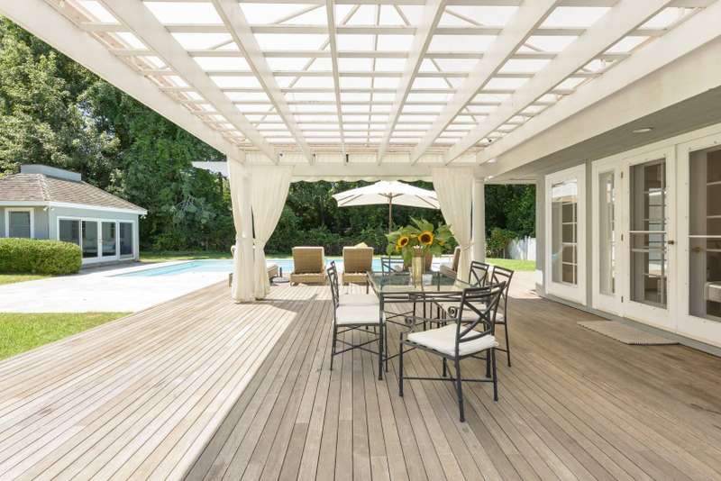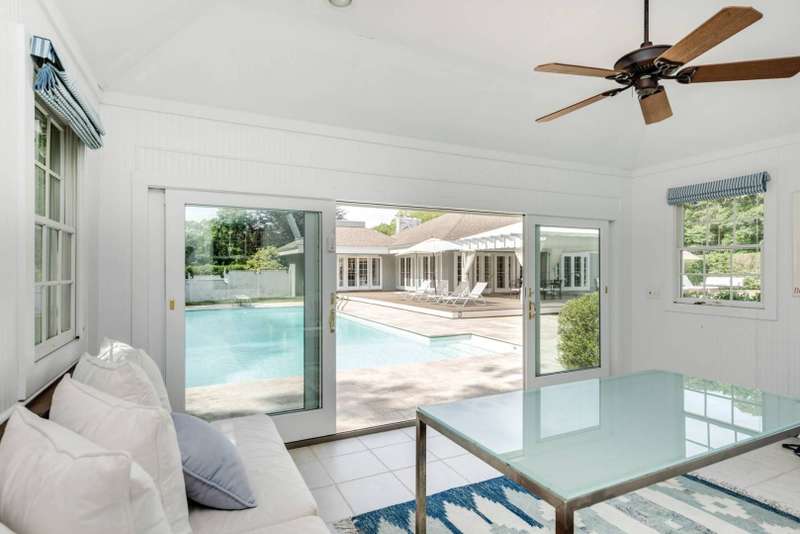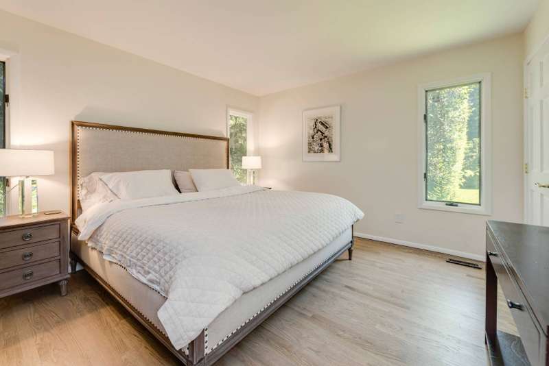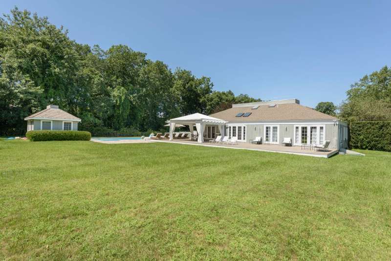 RR# RP230701.Post Modern house sits on acre of beautifully landscaped grounds with large pool, furnished pool house, gorgeous, rolling lawn, and outdoor shaded dining area with barbecue grill. House architecture has a contemporary feel for airy, sunny rooms with lots of white color and modern shapes. It has living room with brick fireplace, dining room/ open kitchen, 4 bedrooms (1 Master Suite and 1 Jr. Master bedroom with brick fireplace), 4 fully renovated all marble bathrooms, central air-condition and pool house with newly installed A/C. It is situated minutes away from Bridgehampton and just over 1 mile from the beach. Home is furnished luxuriously with all new Restoration Hardware furniture Listing ID: 737868