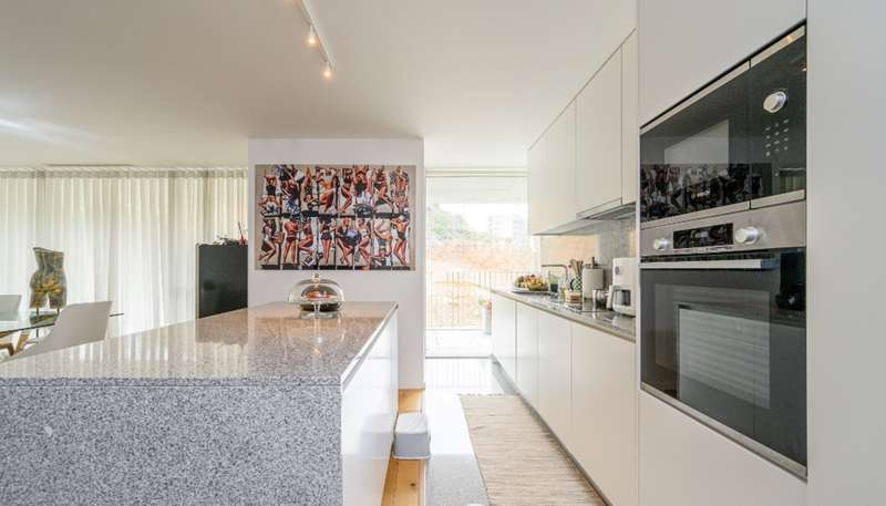 Magnificent apartment located on the riverfront, with stunning and unique views. The location is marked by the meeting of the Douro River and the sea, whose promenade - with terraces, bars and gardens - makes this one of the most prestigious areas in Gaia. With superior finishes and construction, it consists of three bedrooms, one of which is en-suite, a full bathroom and a guest bathroom, a living room with a wood-burning stove, generous areas with lots of natural light and a huge balcony with sea views. The fully functional kitchen is equipped and furnished. There is also a closed garage for 2 cars. Located in a totally residential area, this apartment is characterized by its tranquillity and security. With the freeway just 5 minutes away, which allows you to travel quickly to Porto Airport and other points of interest, you have all the amenities nearby, such as restaurants, shopping centers, educational establishments, commercial and business areas. CHARACTERISTICS:Area: 130 m2 | 1 397 sq ft Bedrooms: 3 Bathrooms: 3 Garage: 2 Energy efficiency: A