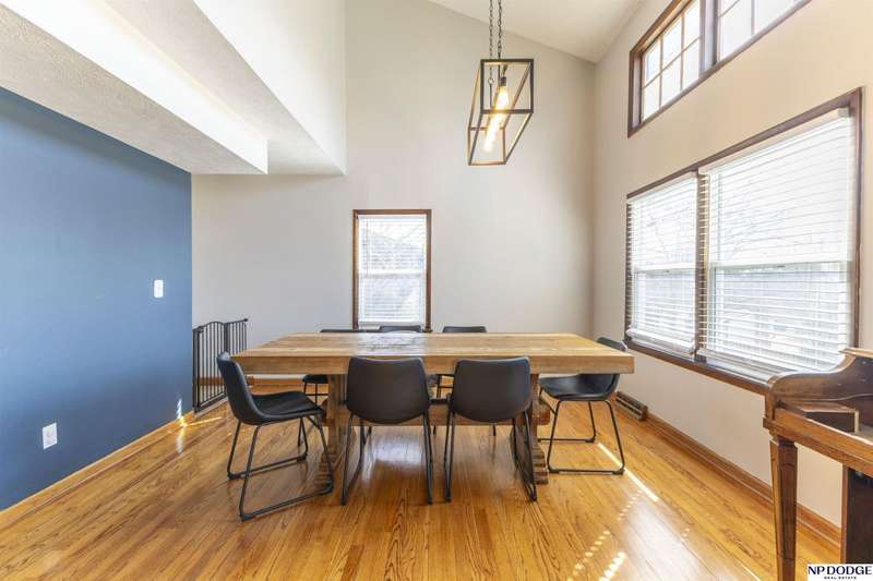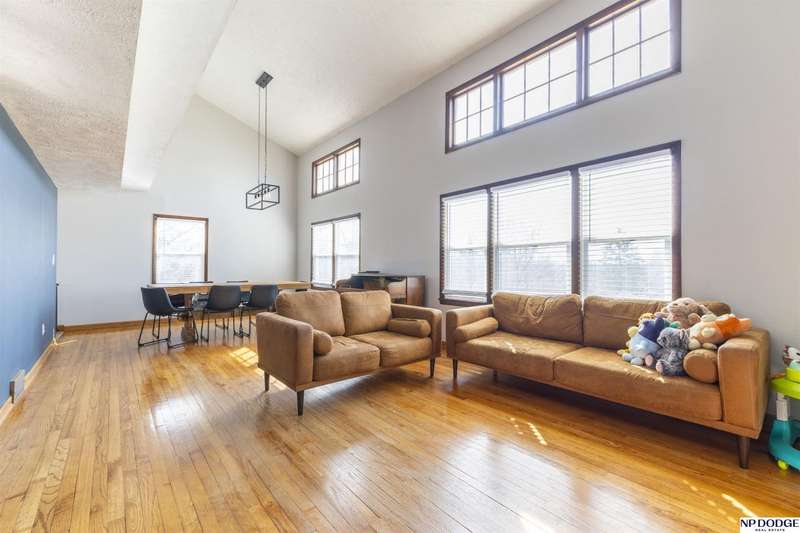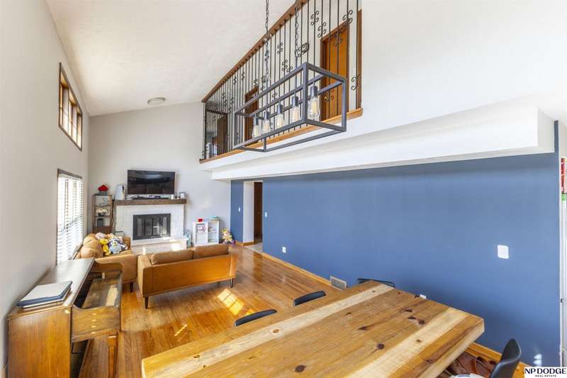 This true 4-bedroom, 4-bath residence offers space, comfort, and updates throughout. The main level features soaring ceilings in the living and dining areas, complemented by hardwood floors, a cozy fireplace, and a convenient half bath. Eat-in kitchen with appliances and access to the side patio. Upstairs, you'll find four generously sized bedrooms, all with hardwood flooring. The primary suite includes a private 3/4 bath, while the additional bedrooms share a full bath. A balcony overlooks the living and dining rooms, adding an open and airy feel. The finished lower level expands your living space with a large family room, wet bar with cabinets, second fireplace, laundry with storage, and direct walkout access to the level, fenced backyard-perfect for entertaining or relaxing in privacy. Recent updates include a newer roof (2024), gutters (2025), furnace (2020), and A/C (2023). All measurements approximate.