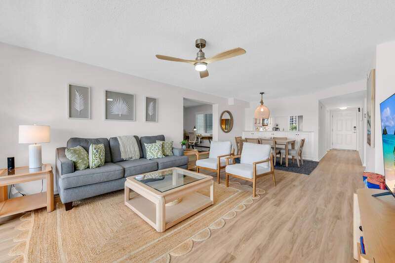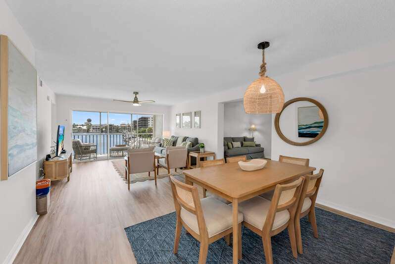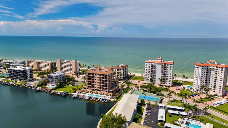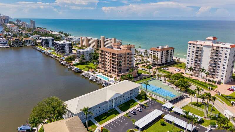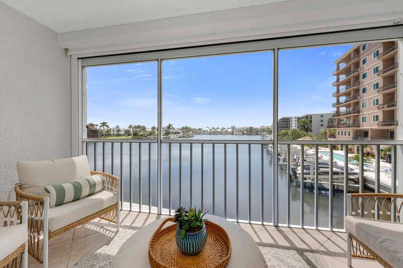 Investor's dream or ideal second home! Already secured with $20K+ in bookings for Jan/Feb 2026, it's a true income opportunity. This bayfront condo delivers both lifestyle and income with breathtaking bay views, direct beach access across from Vanderbilt Beach, and a generous rental policy allowing up to 12 rentals per year (30-day minimum). Renovated in a contemporary coastal style, this turnkey residence offers 1,248 sq. ft. of living space with luxury vinyl floors, high-end finishes, and designer furnishings. The layout includes 2 bedrooms plus a flexible den, providing plenty of space to host and entertain. The updated kitchen features solid wood cabinets, stainless appliances, ample counter space, and a breakfast bar flowing into the open living/dining area that extends onto a southern-facing screened patio. Amenities include a community pool, gated entry, and covered parking. Ideally located near Mercato, Waterside Shops, The Ritz-Carlton, LaPlaya, Whole Foods, Turtle Club, and Delnor-Wiggins State Park.