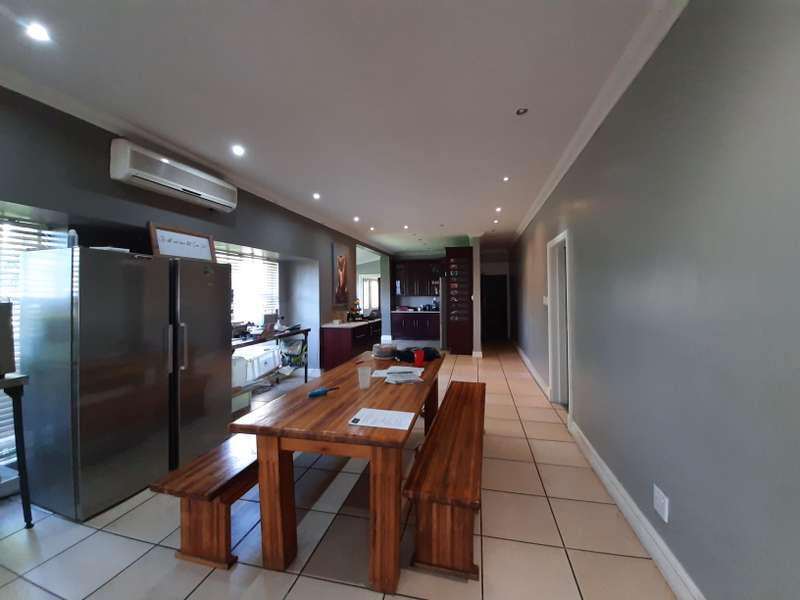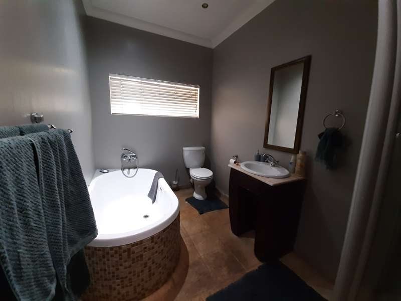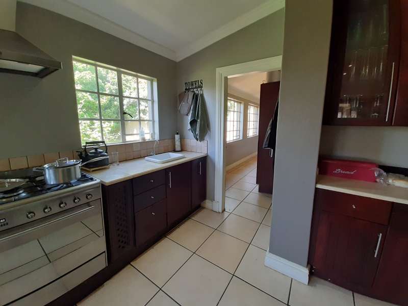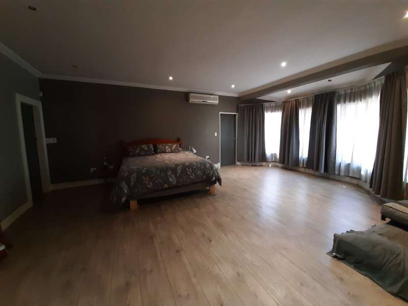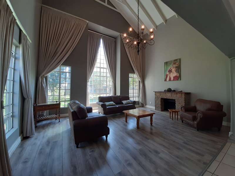 This beautiful property is well maintained and absolutely stunning! You won't get another one like this in Delmas. The garden is landscaped and beautiful. The house is improved with 5 bedrooms and 3 bathrooms, a very big open-plan living room, TV room and entertainment area with a built-in braai , a stunning kitchen with a gas stove, a scullery, and a laundry room, There is a big outside bathroom with a toilet and washing basin. A garage that can accommodate 4 vehicles. A nice-sized swimming pool. There is a flat with 4 big rooms and a bathroom that needs attention. A BIG BONUS on this property is that it has a fully equipped and operational borehole. 3 phase electricity. CCTV and alarm system are the best you can get