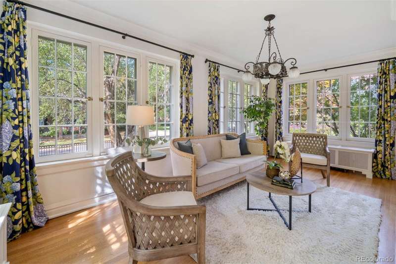 Offering $100,000 seller concession at closing on this luxury estate set on a rare, 15,600 sq ft lot along Denvers historic 7th Avenue Parkway. This private, gated home blends timeless architecture with sophisticated luxury and modern updates including electrical, plumbing, and new AC system. Behind its stately brick exterior, this home reveals a beautifully updated interior featuring rich hardwood floors, graceful archways, and abundant natural light throughout. The flowing open floorplan features formal living and dining rooms, a gourmet kitchen with premium appliances, cozy den, sunroom, and a main-floor family room that opens seamlessly to the custom brick patio courtyard and fenced backyard. Luxury abounds, upstairs the Primary Suite offers a serene retreat with spa-inspired bath, walk-in closet, steam shower, and fireplace. Each additional bedroom includes its own ensuite bath - ideal for family or guests. The finished basement includes a second, spacious Family Room, bedroom w/ensuite bath, powder bath, mechanical room, and abundant storage. The Carriage house apartment complete with living room, bedroom, kitchen, and bath, located above the heated garage is perfect for guests, family, office or studio, or live-in help. Close to Cherry Creek, downtown Denver, Cheesman Park, Denver Botanic Gardens, top-rated schools, and shops and restaurants, youll enjoy the perfect balance of privacy, proximity, and urban convenience. Explore the details in the 3D tour linked above. $100,000 Seller concession at closing based on a mutually agreed upon contract. Call me today for a private showing.