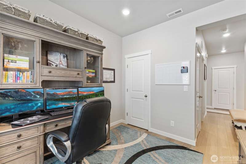 This beautiful rambler checks all the boxes! Clean & well-maintained and located on a quiet street in a newer neighborhood. Offering a peaceful vibe without being too far from shopping, restaurants, & entertainment. Inside are 3 bedrooms AND a home office, high ceilings, a cozy fireplace, and an open layout that’s great for everyday living and entertaining. The kitchen is a total standout including a gas stove, and the primary suite is your own little retreat with a private bathroom suite. Outside, is your fully fenced level backyard—ideal for playing, kicking back, hosting a BBQ, & more. The shed stays, and there’s a gorgeous green space view out front for added charm. Come check it out—it may be just what you are looking for.