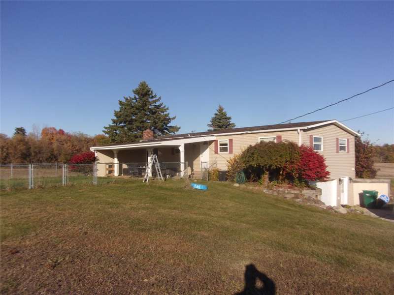 This is a Raised Ranch property that spans 2.88 acres. The main level features 3 bedrooms and there is an in-law suite along with a full bathroom on the lower level. The garage at the lower level has a walk out design and includes a workshop space. A 10 by 16 storage shed will be included with the property. In the backyard, there is a fenced area suitable for pets. The home is set in a picturesque country environment with rolling hills. Access is via a paved road and there is a concrete driveway for convenience. This property offers a great combination of space and features for those seeking a tranquil lifestyle.