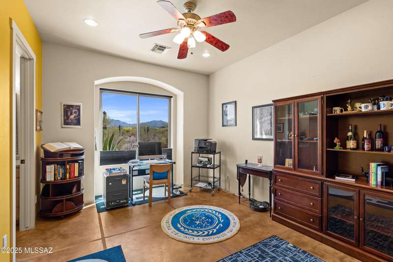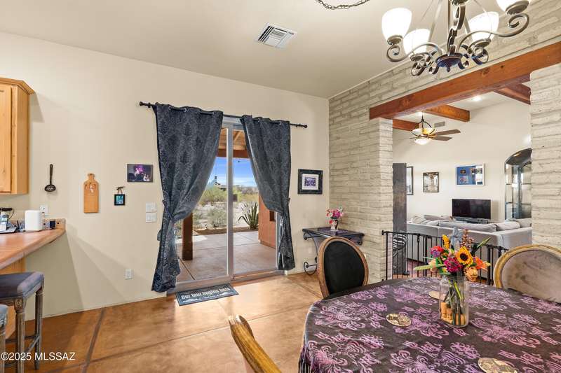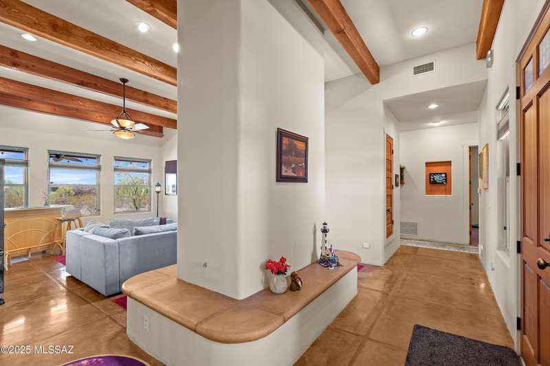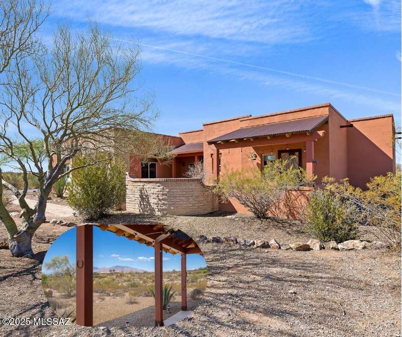 Discover the essence of SW living in this one-of-a-kind custom retreat perfectly nestled on over 3 acres in the breathtaking Tucson Mountain Reserve. Surrounded by pristine desert & unobstructed mtn views, this exceptional home offers the ideal balance of privacy, tranquility & timeless design. Step inside to a welcoming great room where exposed wood beams, striking adobe accent wall & cozy fireplace create rustic elegance & warmth. Open layout featuring scored concrete floors throughout--no carpet anywhere! Thoughtfully designed kitchen is both stylish & functional, offering abundant cabinetry, concrete countertops, a generous island & breakfast bar-ideal for gatherings or everyday living. Spacious primary suite serves as a true sanctuary w/its own fireplace, direct patio access,